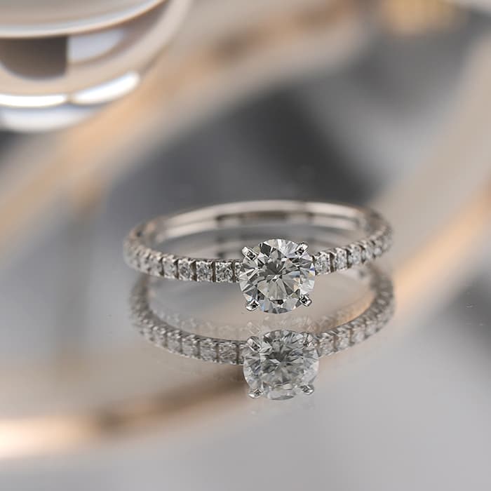 世界5大ジュエラーとして世界中から愛されるブランド「カルティエ」。ハーフエタニティのエタンセル ドゥ カルティエに中央に宝石を1つだけあしらったソリテール リングです。 華奢で女性らしいデザインでありながら、0.44ctの一粒石ダイヤモンドは存在感があります。