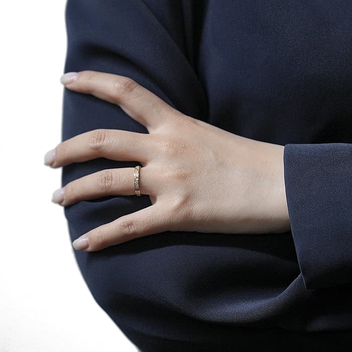 世界5大ジュエラーとして世界中から愛されるブランド「カルティエ」。カルティエが手掛ける「束縛」や「愛の絆」をテーマにして作られた「ラブコレクション」は、老若男女問わず不動の人気を博しています。その中でも、「愛を閉じ込める」という意味のビスマークが刻印された「ラブリング」は、ペアリングとして購入される方も非常に多い人気ラインです。こちらのラブリング スモールモデルは通常のラブリングに比べ細くスッキリとした造りとなっております。華やかなイエローゴールドのリングの表面に、贅沢にダイヤを配置した華やかでゴージャスなリングです。煌びやかなダイヤと洗練された印象を与えるイエローゴールドのリングがお手元を美しく飾ります。