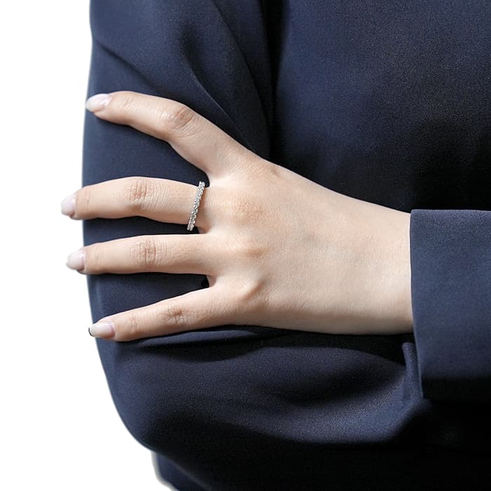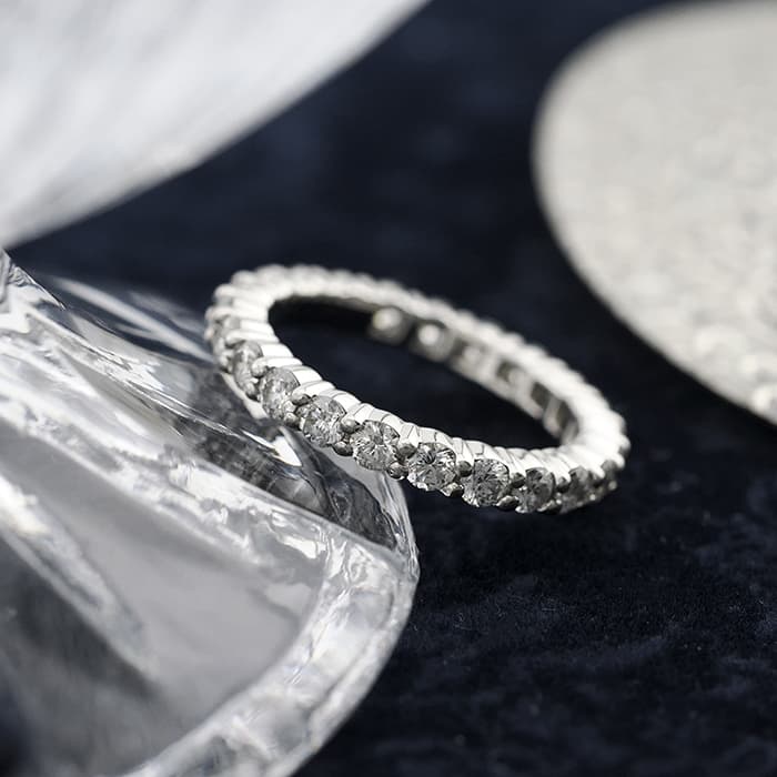 世界五大ジュエラーの一つであり「キング・オブ・ダイヤモンド」とも称されるハリーウィンストン。ラウンド・ブリリアントカット・ダイヤモンドをプロングセッティングしたフルエタニティリングです。プラチナ素材に、計約1.25カラットの25個のラウンド・ダイヤモンドが贅沢に敷き詰められております。ソリテール リングの相性も抜群です。