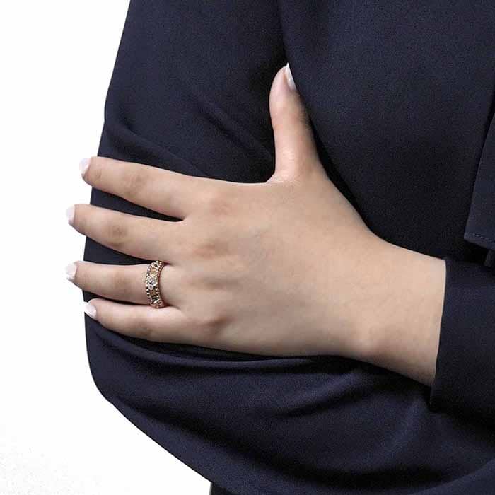 フランスに本店のある宝石、時計、香水を扱うハイジュエラー「ヴァンクリーフ&アーペル」。1906年に誕生し、数多くのセレブリティから愛されているブランドとなります。アイコンジュエリーのひとつとして愛され続けてきたコレクション「ペルレ」。こちらの「ペルレ スウィートクローバー リング」は18K ローズゴールドリングに幸運のシンボルでもあるクローバーをあしらい、ダイヤモンドをセッティングしています。華やかで、可愛らしく指元を輝かせてくれるモデルです。