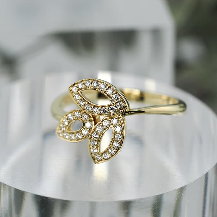 世界五大ジュエラーの一つであり「キング・オブ・ダイヤモンド」とも称されるハリーウィンストン。「リリークラスター」はユリの花の自然な美しさにインスピレーションを受け誕生しました。イエローゴールド素材に加え花びらに贅沢にセッティングされたダイヤモンドが美しい、ハリーウィンストンらしい高級感溢れるリングです。