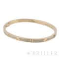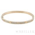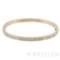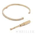 カルティエ ラブブレスレット 17号 ピンクゴールド ダイヤモンド 世界5大ジュエラーのひとつである「カルティエ」。1970年代にニューヨークで生まれた「LOVE」コレクションは、ビスのモチーフが特徴です。 一人では着脱が難しいことから「愛の絆」が表現されており、カルティエを代表する人気コレクションとなっています。 ピンクゴールドを贅沢に使用したこちらのブレスレットは、無数のパヴェダイヤモンドが全体にセッティングされており、コーディネートの主役になれる存在感を持ったジュエリーです。 2024年4月 カルティエにて修復サービス・磨き・ドライバー購入済み 複数の小傷はありますが、大きな打痕はございません。 カルティエのサービスを受けており、安心してご使用いただけます。