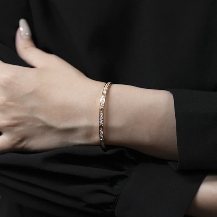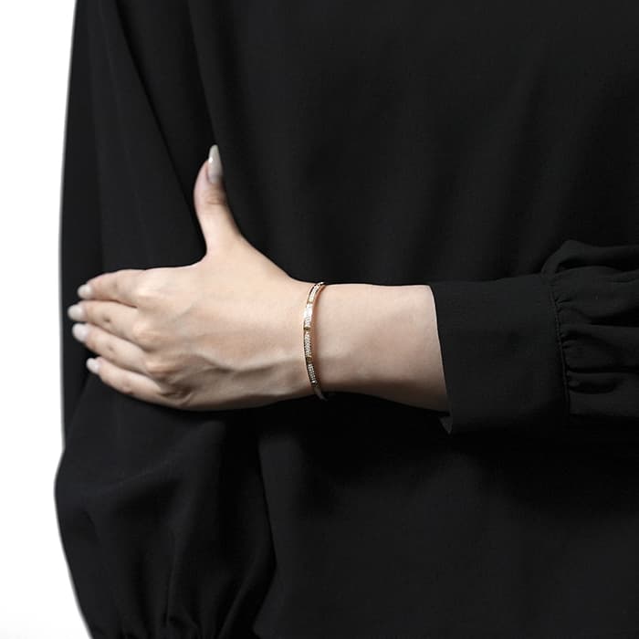 ピンクゴールドを贅沢に使用したこちらのブレスレットは、無数のパヴェダイヤモンドが全体にセッティングされており、コーディネートの主役になれる存在感を持ったジュエリーです。