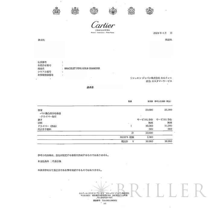 2024年4月 カルティエにて修復サービス・磨き・ドライバー購入済み