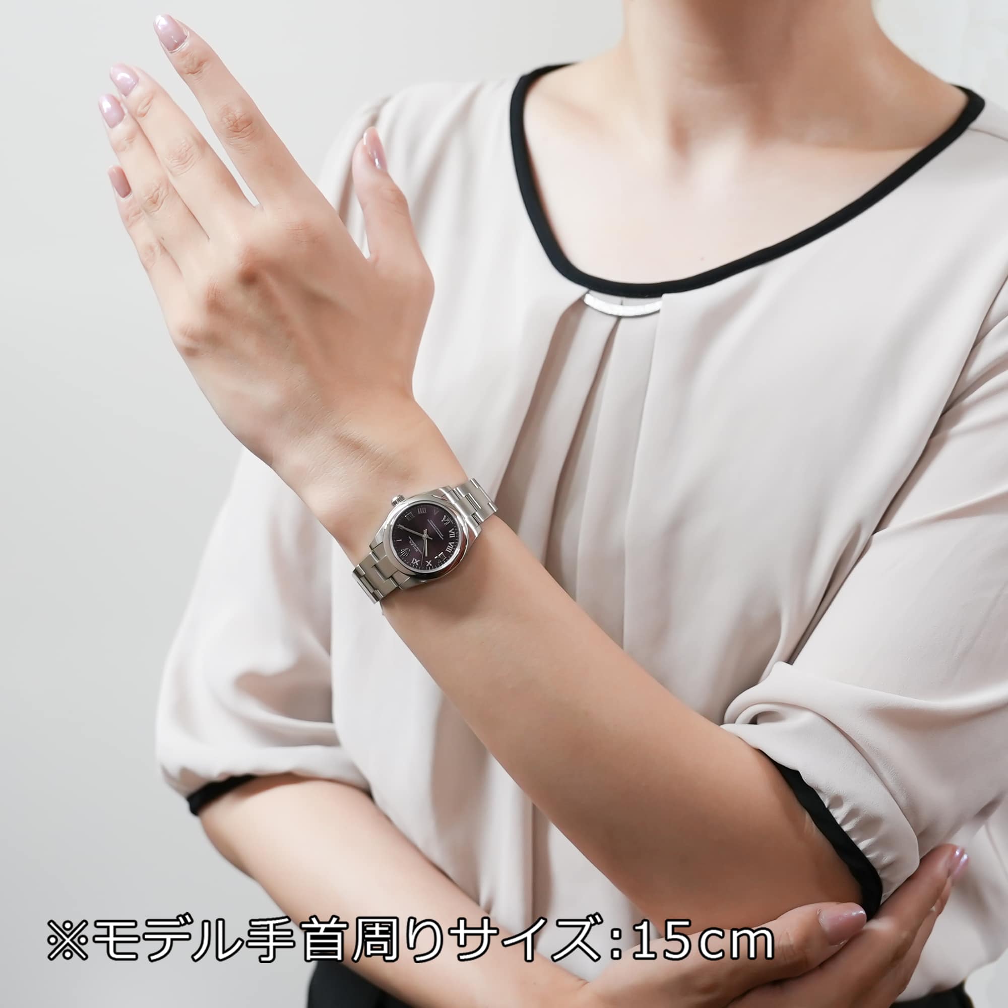 お客様の手首まわりのサイズを商品詳細ページでご入力ください。新品・未使用品の場合、サイズ調整後の返品・交換はお承りしておりませんので予めご了承ください。