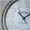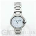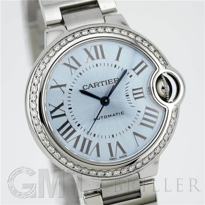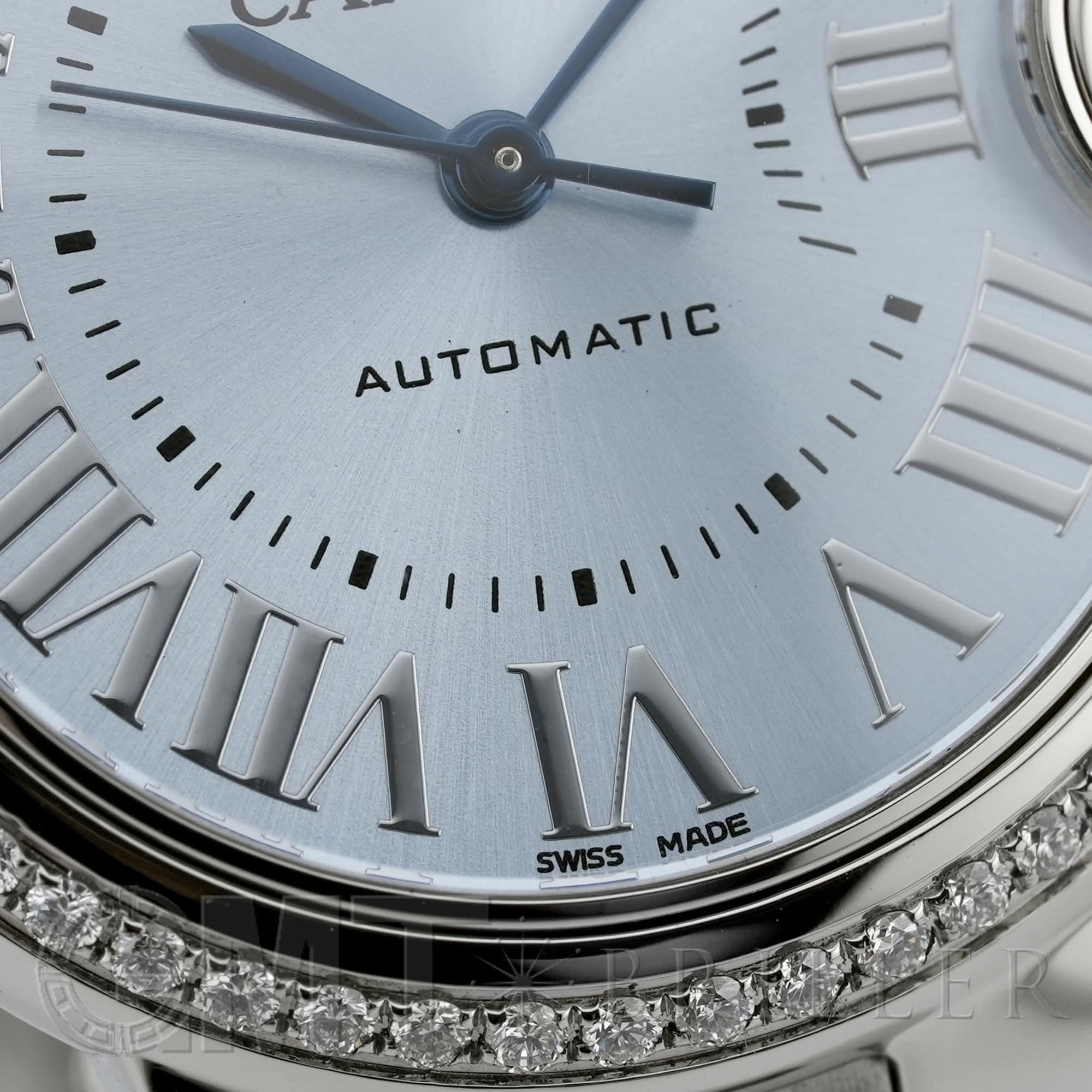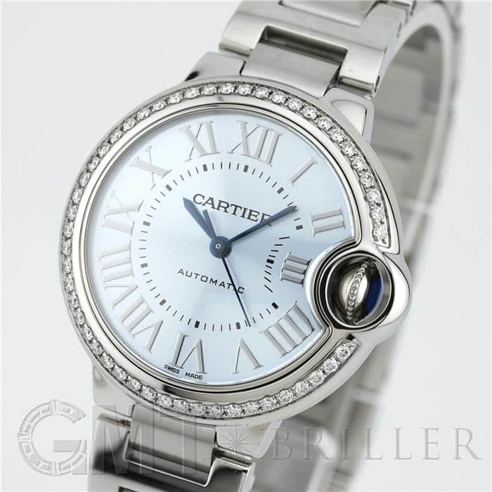 カルティエ バロンブルー ドゥ カルティエ オートマティック 33mm W4BB0028 2007年に誕生した、フランス語で「青い風船」を意味する「バロンブルー」コレクション。 リューズの青いカボションを、風船のようなフォルムに閉じ込めた唯一無二のデザインは、シンプルでありながら独特の存在感を放ちます。 ブルーシルバー文字盤が特徴的なレディースモデル「W4BB0028」は、ベゼルにブリリアントカットダイヤモンドを50個(約0.58ct)もセッティングしたエレガントな腕時計です。 自動巻きムーブメントを搭載した本格機械式時計でありながら、5大ジュエラーとして名を馳せるカルティエの高品質なダイヤモンドを存分に堪能していただける1本に仕上がっています。 保証書日付 2023年3月 2024年7月 当社提携工房にて外装仕上済み わずかな傷はあるものの、大きく目立つ傷のないキレイな状態です。 当社の中古品はインターネットでも安心してご購入頂けるよう、しっかりとした点検整備を行っております。カルティエ 時計の買取り・下取りも行っておりますので、お気軽にご相談ください。