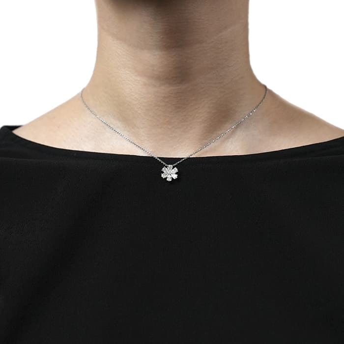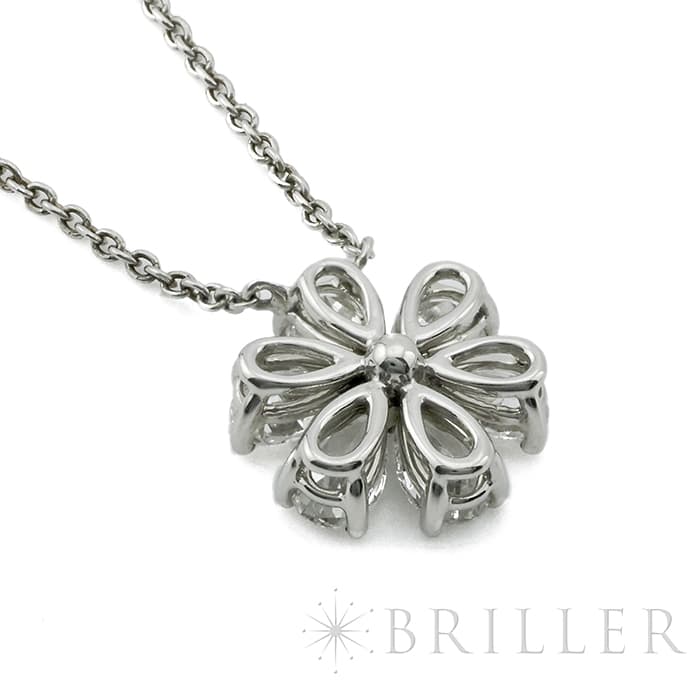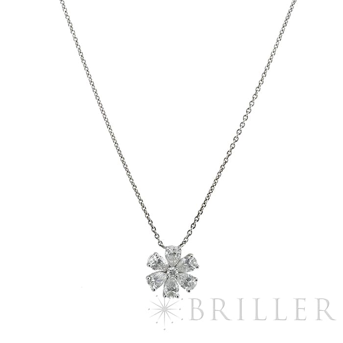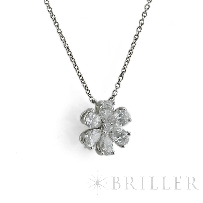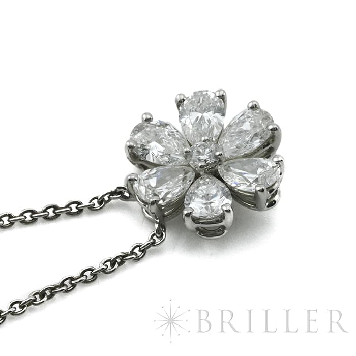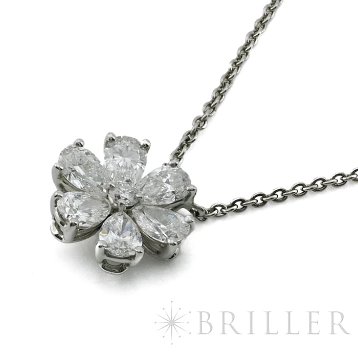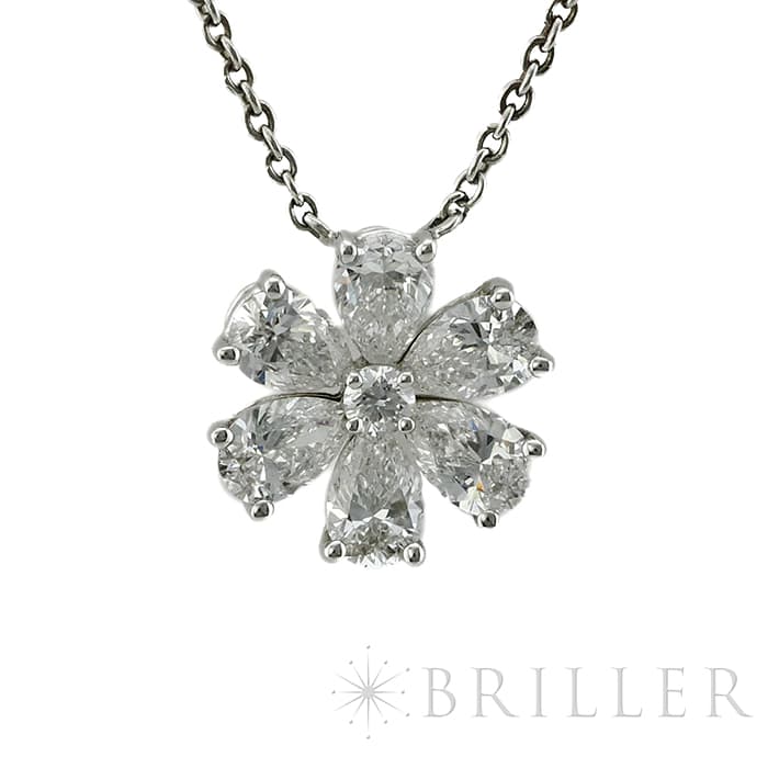 6粒のペアシェイプダイヤモンドと、1粒のラウンドダイヤモンドは、計約1.07ctもの大きさを誇り、ハリーウィンストンの高品質なダイヤモンドを存分に堪能していただけるネックレスです。