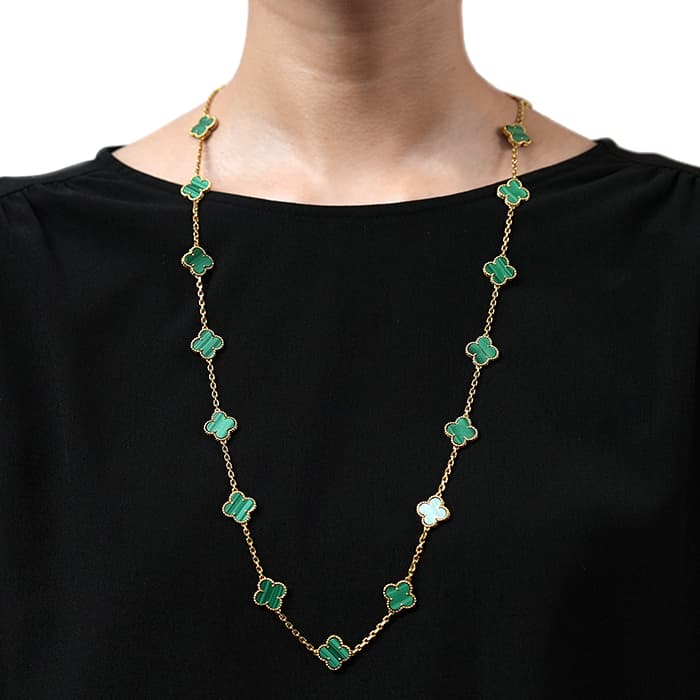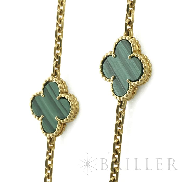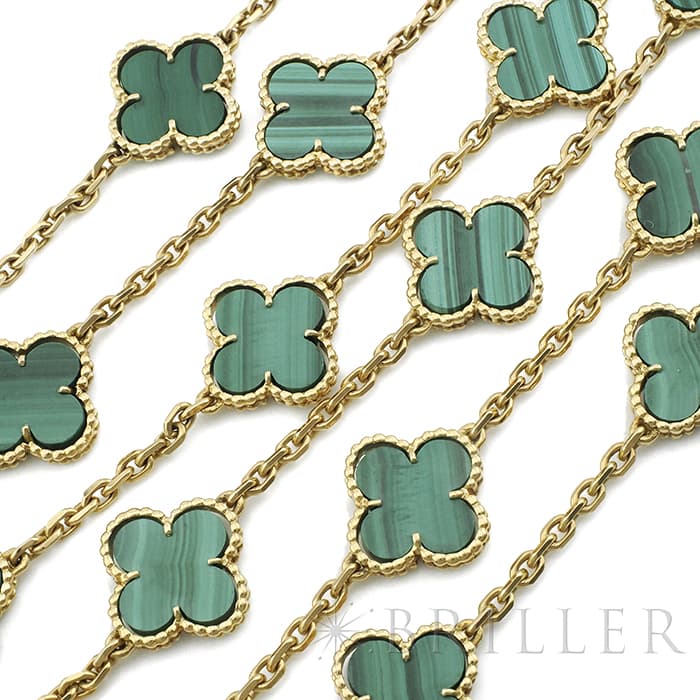 ヴァン クリーフ&アーペル ヴィンテージ アルハンブラ ロングネックレス 20モチーフ イエローゴールド マラカイト VCARL88100 Van Cleef & Arpels