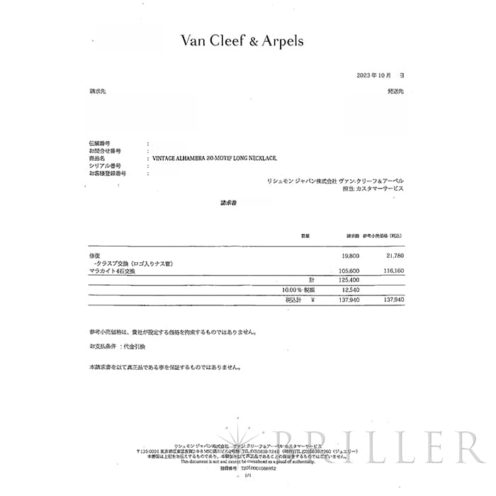 2023年10月ヴァン クリーフ&アーペルにて修復済み