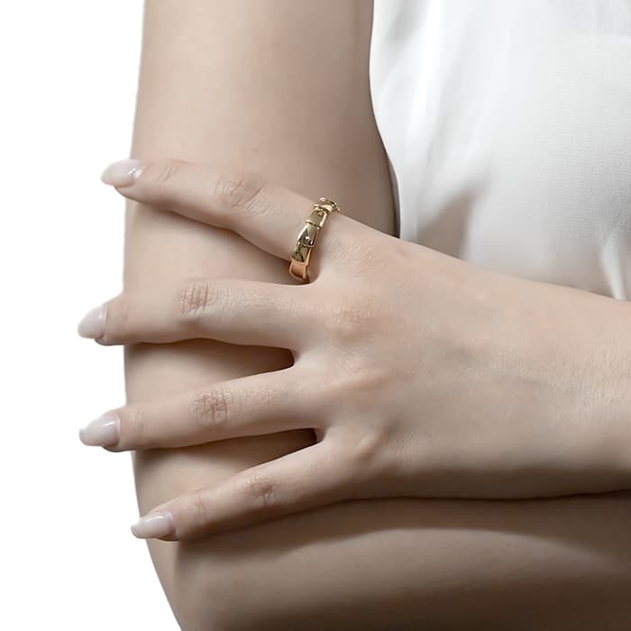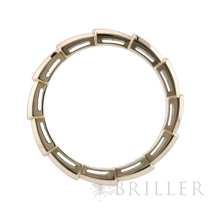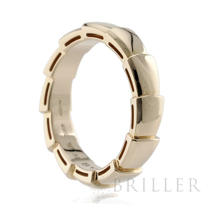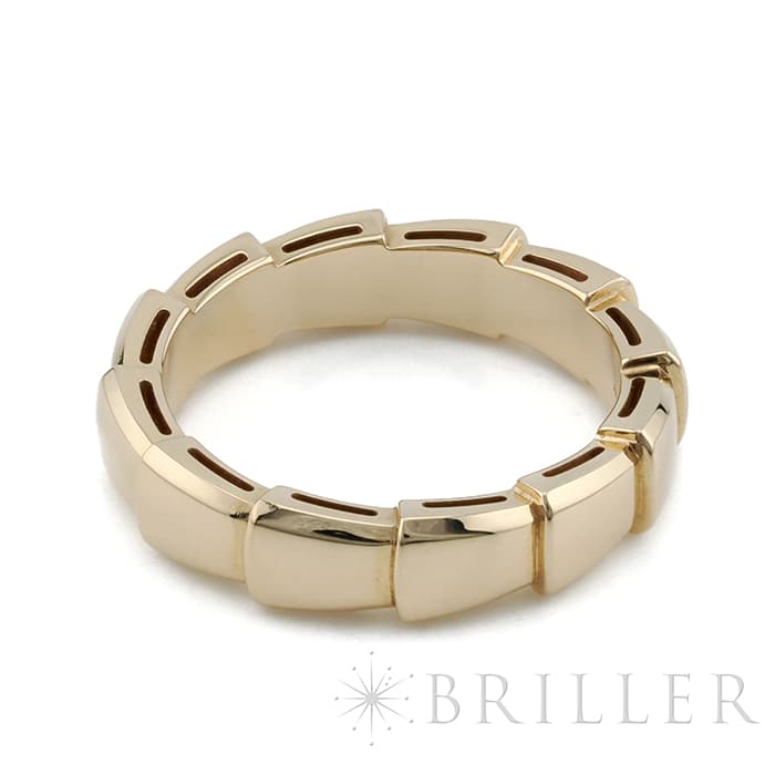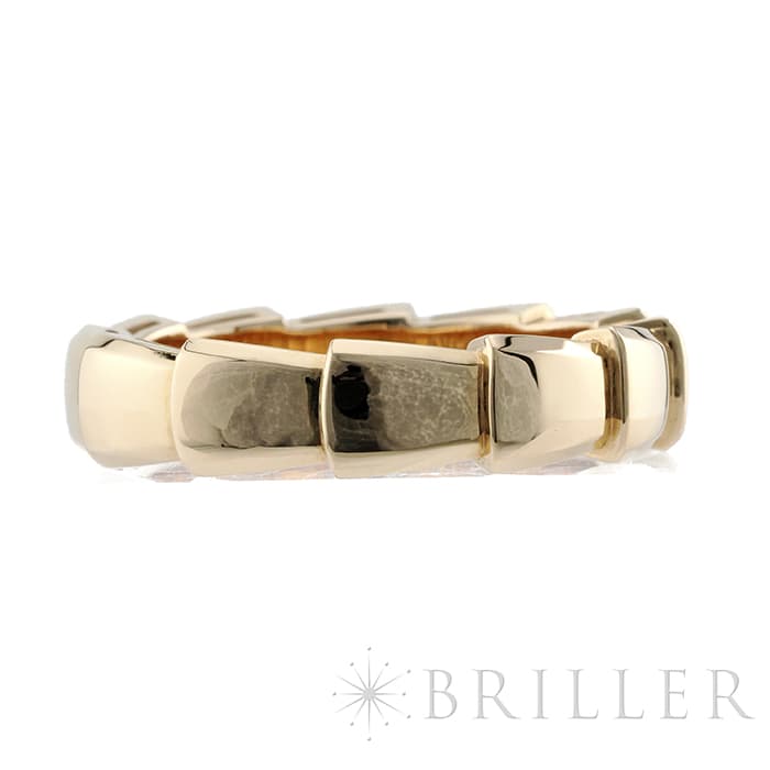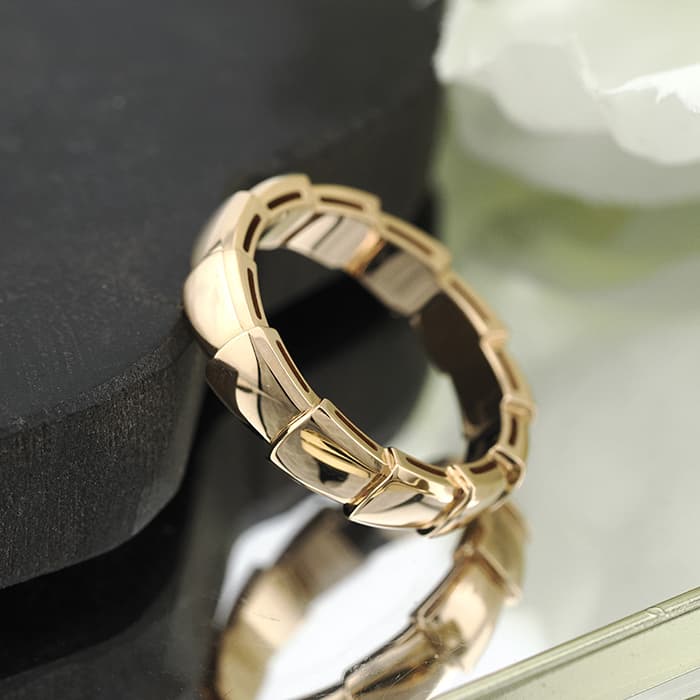 ブルガリを代表するアイコンであるセルペンティを、その洗練されたデザインが際立つよう再解釈して生み出された「セルペンティ ヴァイパー」様式化された鱗のモチーフが連なる構造は、新たな蛇の魅力を大胆に表現しています。シンプルな構成ながらもピンクゴールドの立体感が存在感のあるリングです。
