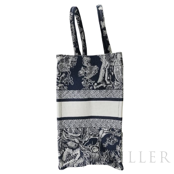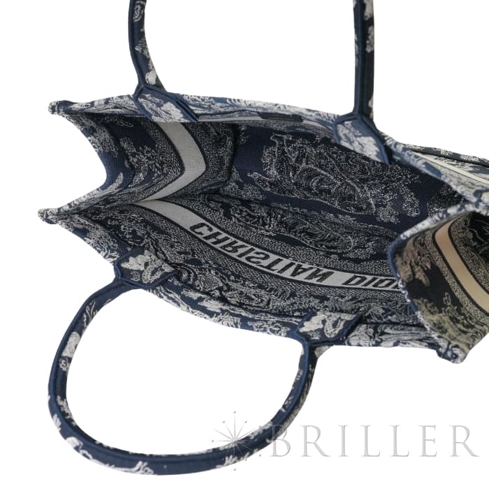 CHRISTIAN DIOR クリスチャン ディオール ブックトート バッグ ミディアム リバース トワル ドゥ ジュイ エンブロイダリー ブルー エクリュ