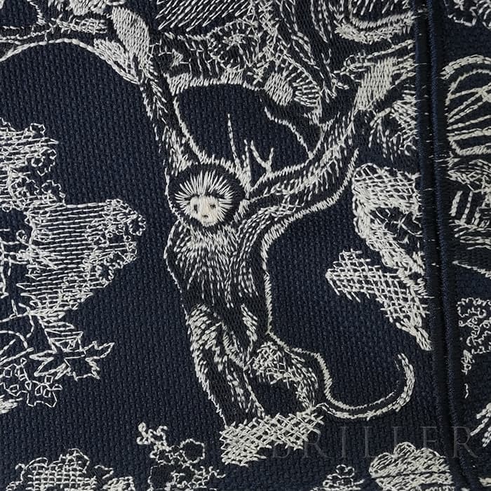 クリスチャン ディオール ブックトート バッグ ミディアム トワル ドゥ ジュイ ソヴァージュ エンブロイダリー ブルー エクリュ Dior