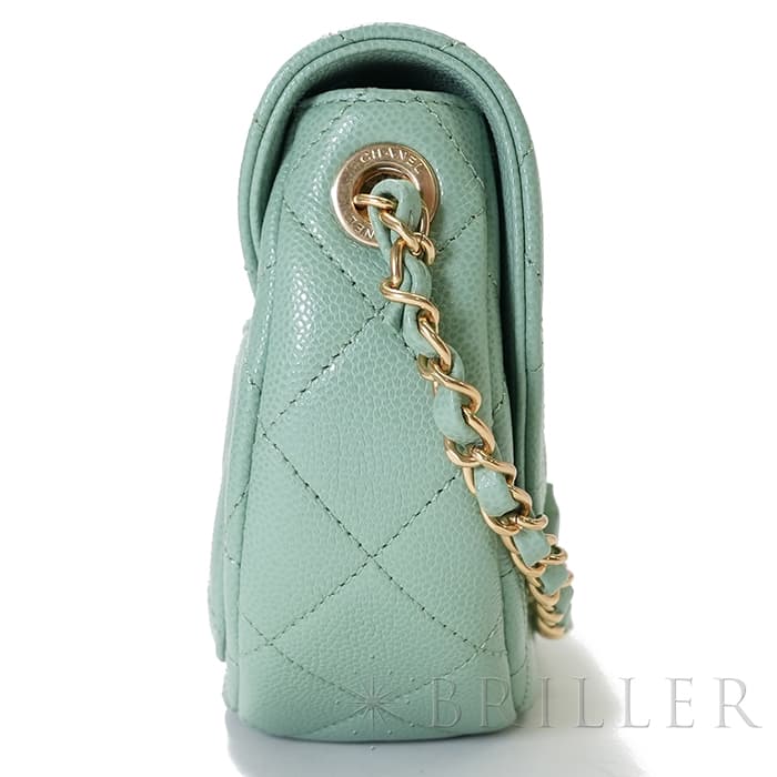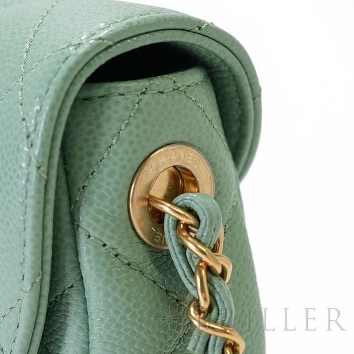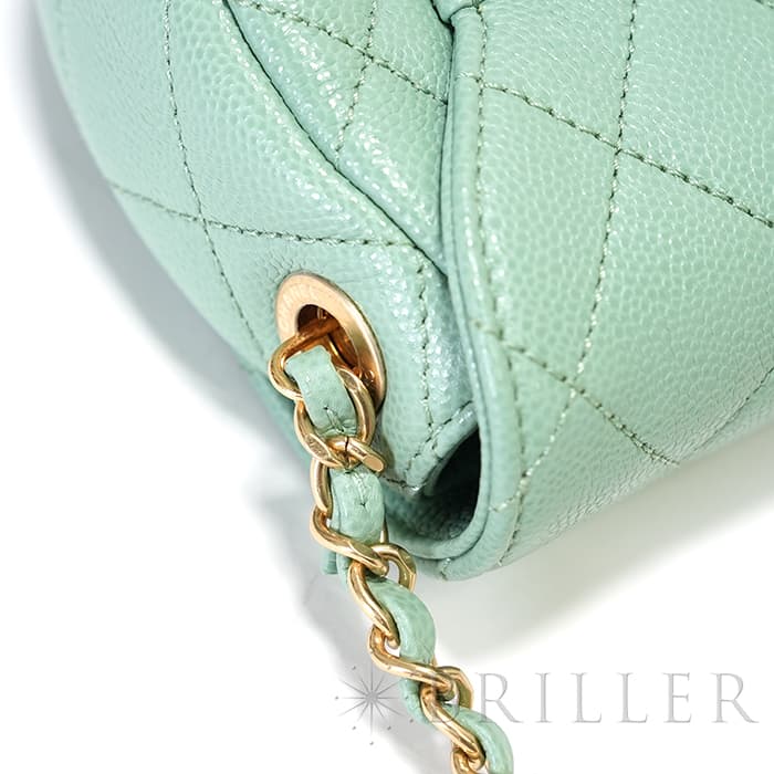 CHANEL シャネル ミニメッセンジャーバッグ キャビアスキン ライトグリーン