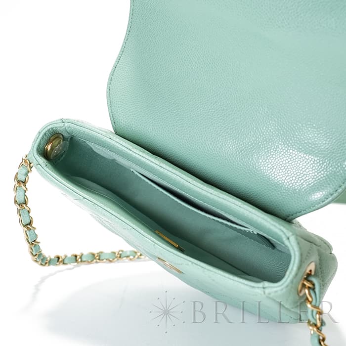 シャネル ミニメッセンジャーバッグ キャビアスキン ライトグリーン