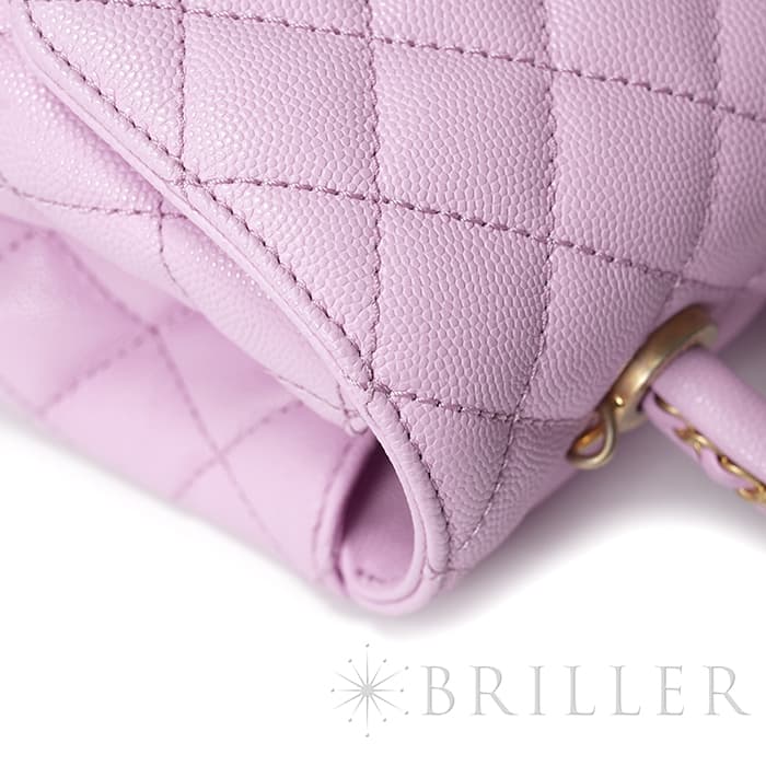 ふっくらとしたキルティングが特徴の「マトラッセ」は、シャネルを代表するバッグのひとつです。フェミニンな可愛らしいピンクで素材には傷や汚れに強いキャビアスキンを使用。型崩れしにくくなる効果があるキルティング加工を施すことで、リッチな質感だけでなく、デイリーユースしやすい実用性をも実現しています。サイズは人気の24、ハンドバックとして、付属のショルダーストラップを使って肩掛けスタイルで、と様々なシーンでエレガントでキュートなコーディネートを楽しめ、一つは欲しい万能バッグです。