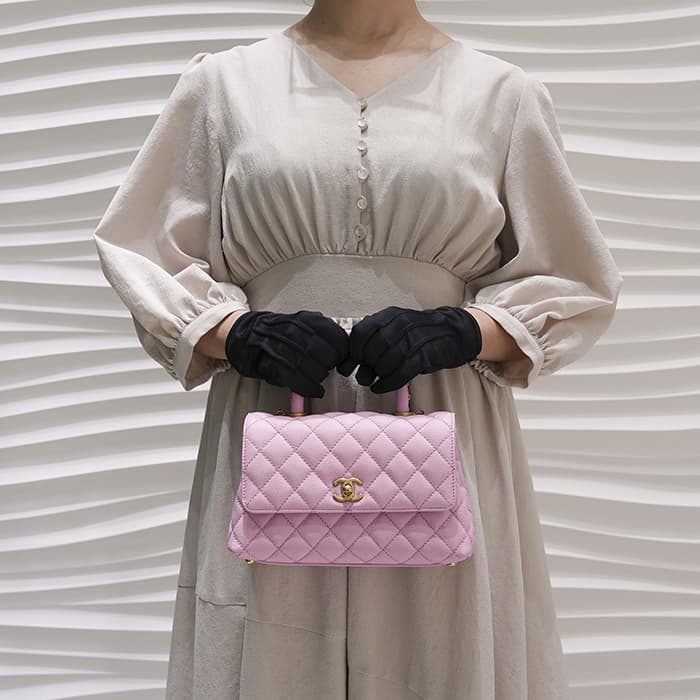 CHANEL シャネル トップハンドル フラップバッグ キャビアスキン ピンク
