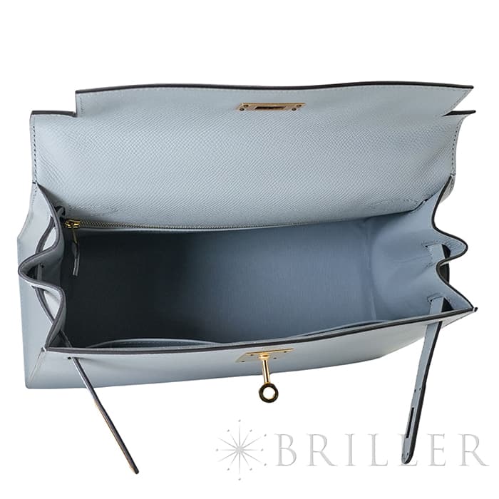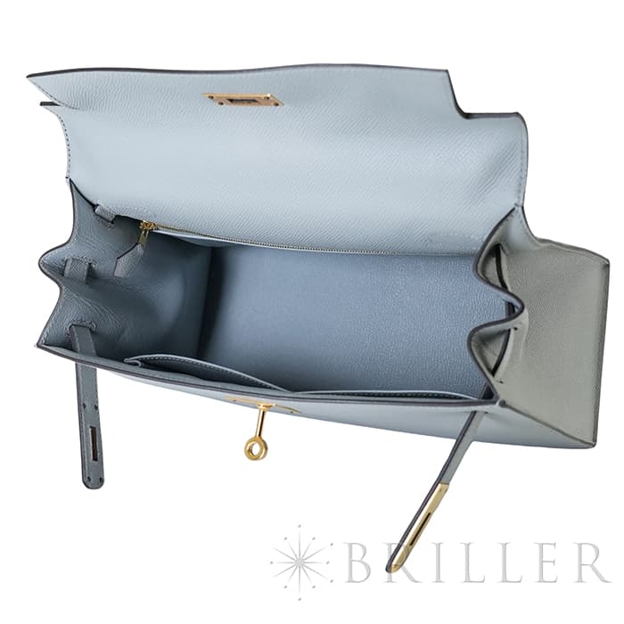 HERMES エルメス ケリー 28 外縫い エプソン ブルーグラシエ ゴールド金具