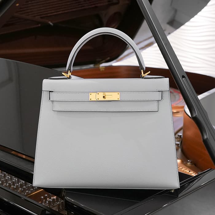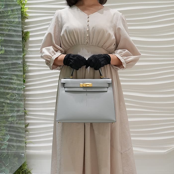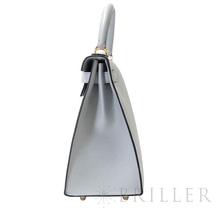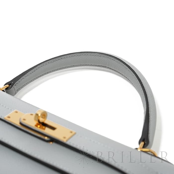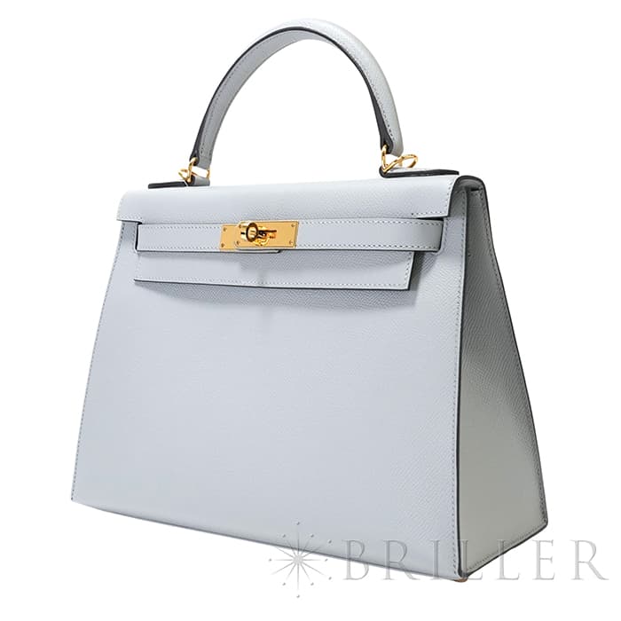 「ケリー」は元々「サック・ア・クロア」という名前で1935年に誕生。女優であったグレース・ケリーがモナコ王妃となり、妊娠した様子を鞄でとっさに隠した写真が話題に。後に「ケリーバッグ」と称されました。外縫いのケリーならではのフォーマルなフォルムに、28サイズというハンドバッグとして軽やかに持ち運ぶことができつつ、ハンドルに腕を通して持つこともできる絶妙なサイズ感。ストラップを付けると肩から掛けることもできるので、装いやシーンに合わせて様々なスタイルでお楽しみいただけます。 フランス語で「氷河」の意味を持つブルーグラシエがクールな大人の女性を演出します。