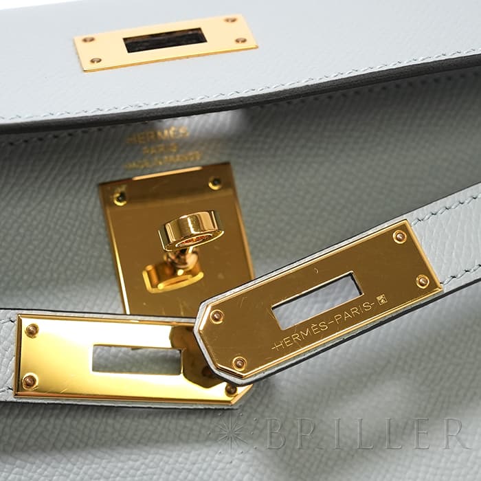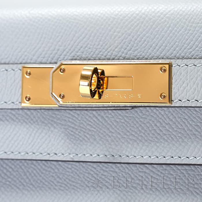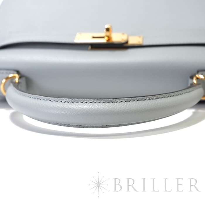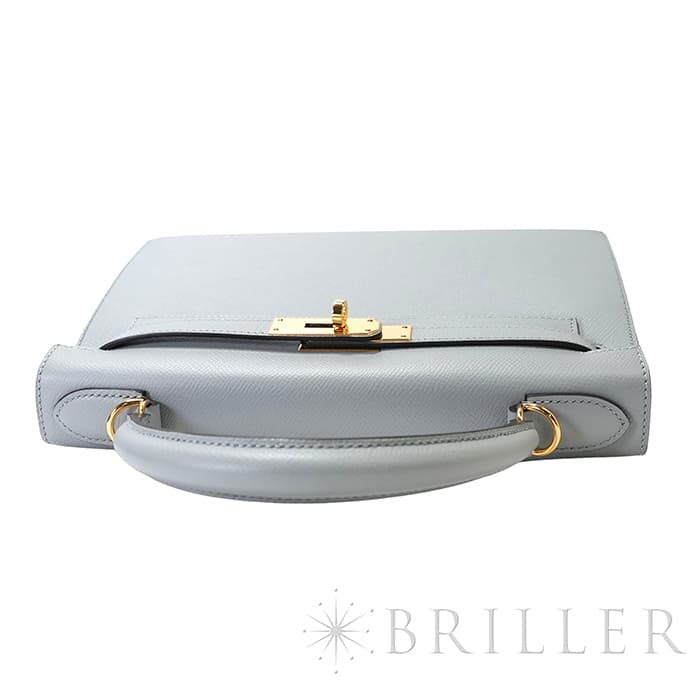 エルメス ケリー28 外縫い エプソン ブルーグラシエ ゴールド金具 HERMES