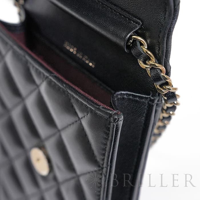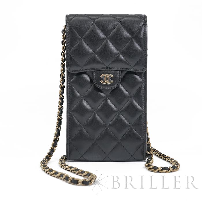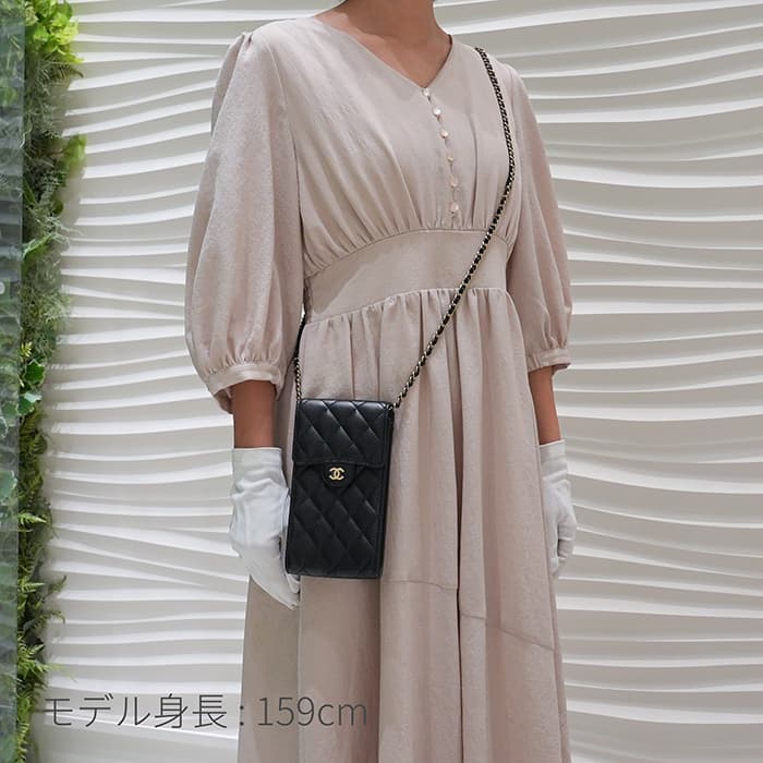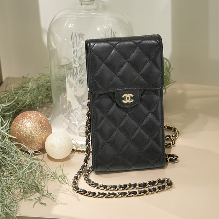 こちらはキャッシュレスの現代に大変適した「フォンポーチ」です。CCロゴをモチーフにした金具やふっくらとしたキルティング「マトラッセ」はシャネルらしい気品を感じます。型崩れしにくくなる効果があるキルティング加工を施すことで、リッチな質感だけでなく、デイリーユースしやすい実用性をも実現しています。 外側にはオープンポケットが1つ、内側にはカードポケットが2つ。身軽にお出かけした方に大変おすすめです。