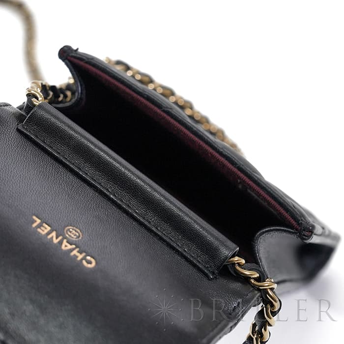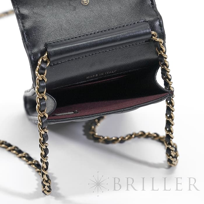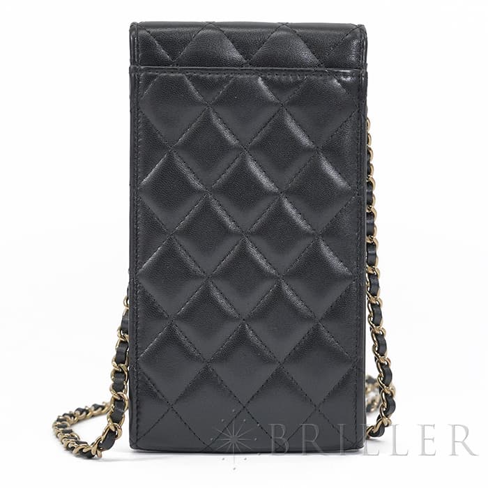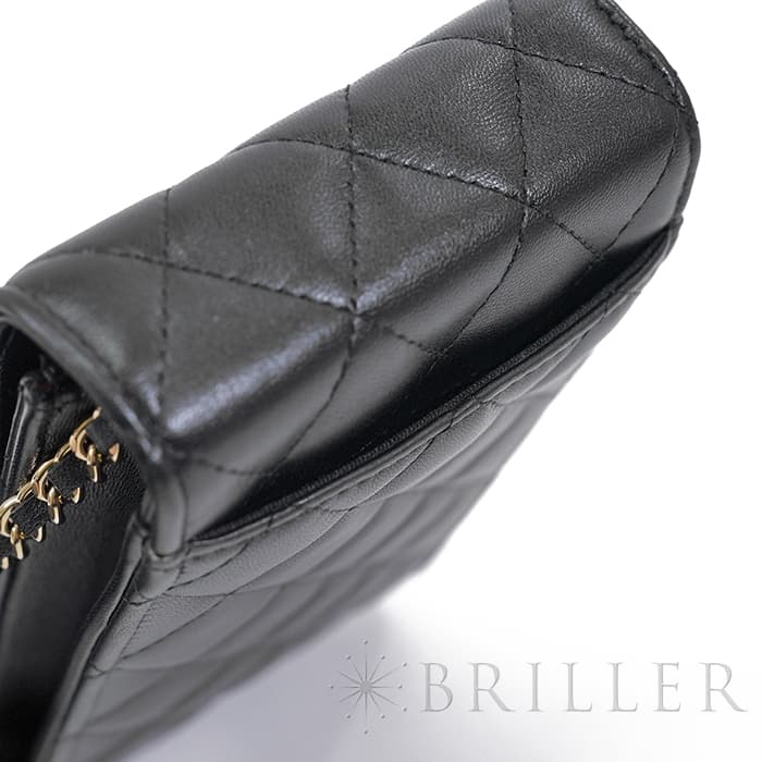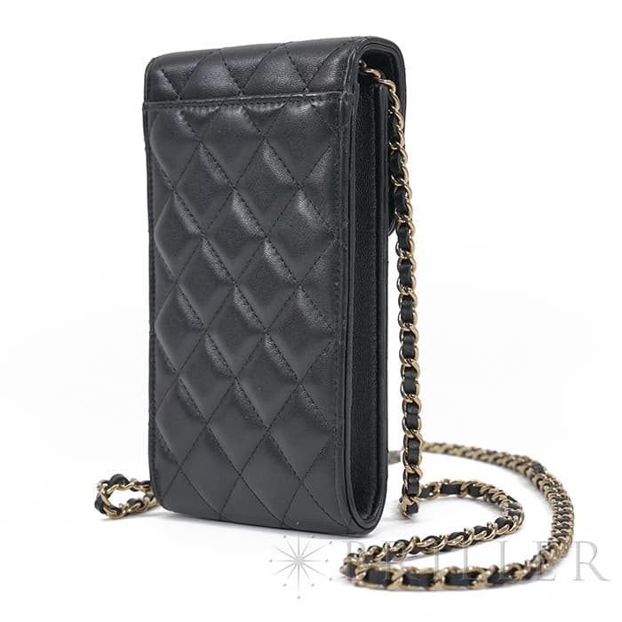 シャネル マトラッセ フォンポーチ チェーン ショルダー バッグ レザー ブラック ゴールド金具 AP2164 CHANEL