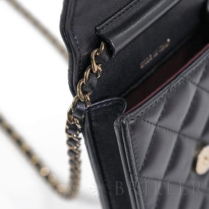 CHANEL シャネル マトラッセ フォンポーチ チェーン ショルダー バッグ レザー ブラック ゴールド金具 AP2164