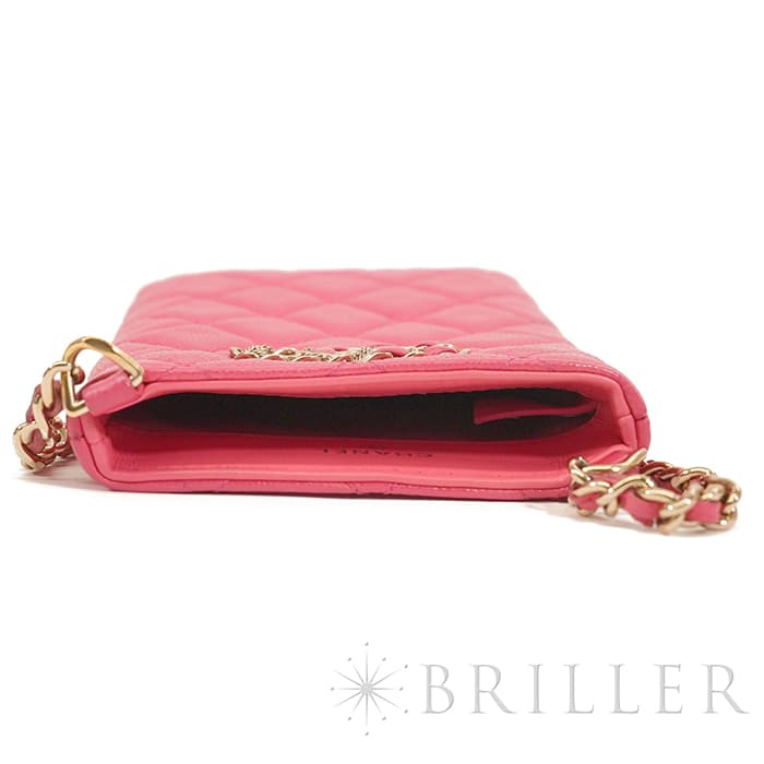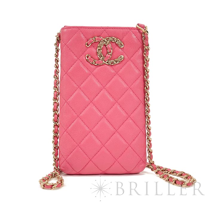 CHANEL シャネル マトラッセ チェーン フォン ホルダー キャビアスキン レザー ピンク ゴールド金具 90240354