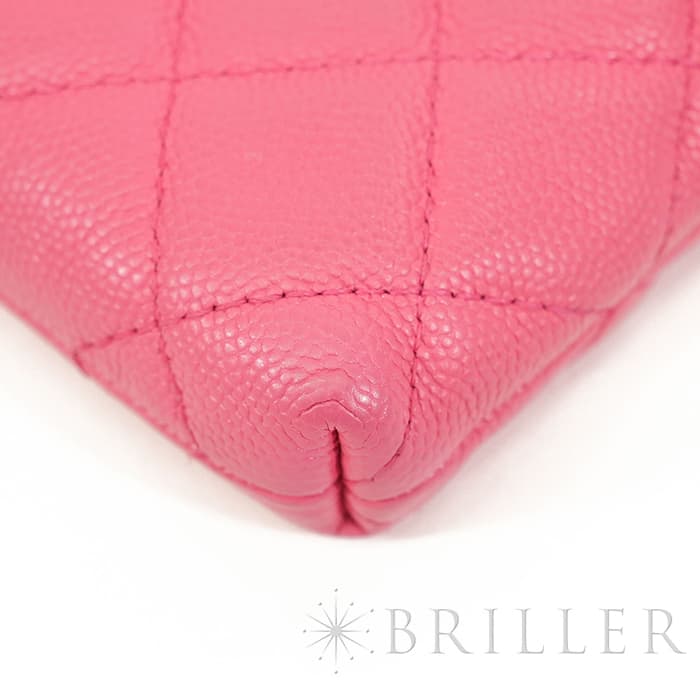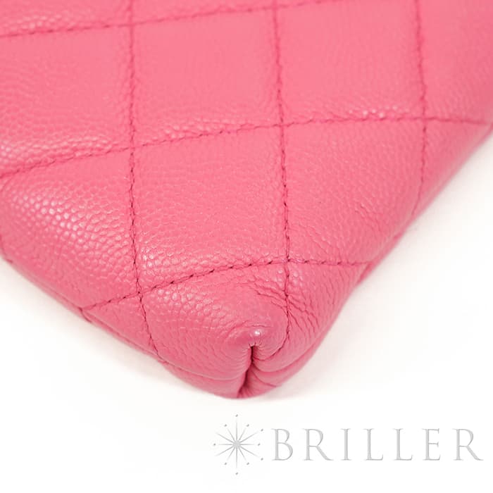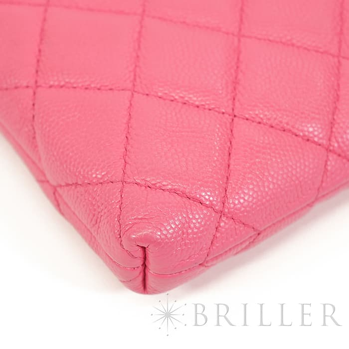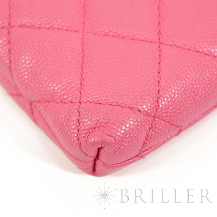 フランス語で「ふっくらとした」を意味するマトラッセ。シャネルを代表するデザインのひとつです。型崩れしにくくなる効果があるキルティング加工を施すことで、リッチな質感と一目でシャネルとわかるアイコニックさを両立しています。ピンクカラーと相まってガーリーな印象が特徴で、傷のつきにくいキャビアスキンはデイリーユースにぴったりな素材です。