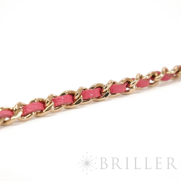 発色の良いピンクとマトラッセの組み合わせがかわいらしいチェーン フォン ホルダーが入荷致しました。