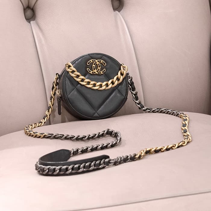 CHANEL シャネル シャネル19 AP0945 19 ラウンド クラッチ チェーン ショルダー バッグ レザー ブラック