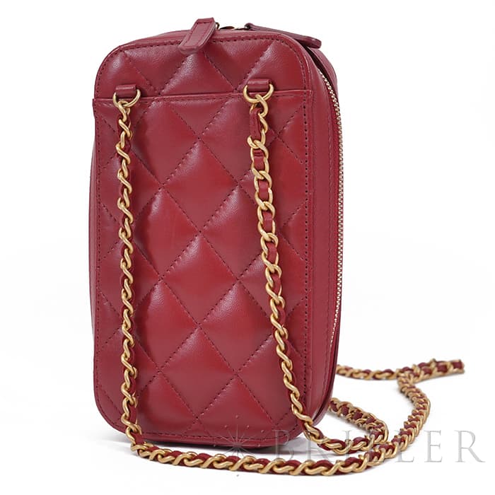 シャネル マトラッセ フォン ホルダー バッグ レザー レッド ゴールド金具 CHANEL 鮮やかなレッドが目を惹くシャネルのフォンホルダーが入荷いたしました。 フランス語で「ふっくらとした」を意味するマトラッセは、その名の通りふっくらとしたフォルムが特徴的です。 キルティング加工を施すことで、型崩れがしにくいという効果だけでなく、エレガントな立体感と柔らかな手触りを実現しています。シャネルならではのクラシカルなデザインに加え、華やかなレッドカラーがモダンな印象をプラスしてくれます。ゴールド金具とのコントラストが上品で、さりげなく高級感を演出します。 使い勝手もよく、ファスナーで大きく間口が開くため、ものの取り出しをスムーズに行うことが可能です。ぜひ、デイリーファッションのアクセントにいかがでしょうか。