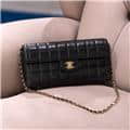 シャネル チョコバー バッグ ラムスキン ブラック A15316 CHANEL 名前の通りチョコレートバーを連想させる可愛らしいショルダーチェーンが入荷いたしました。シャネルのアイコンであるココマークとスマートなチェーンをバッグ側面にもあしらったモダンなデザインが、コーディネートのアクセントとして活躍してくれます。定番のブラック×ゴールド金具の為、幅広いファッションに合わせやすいショルダーバッグです。