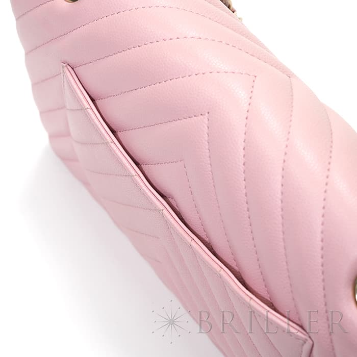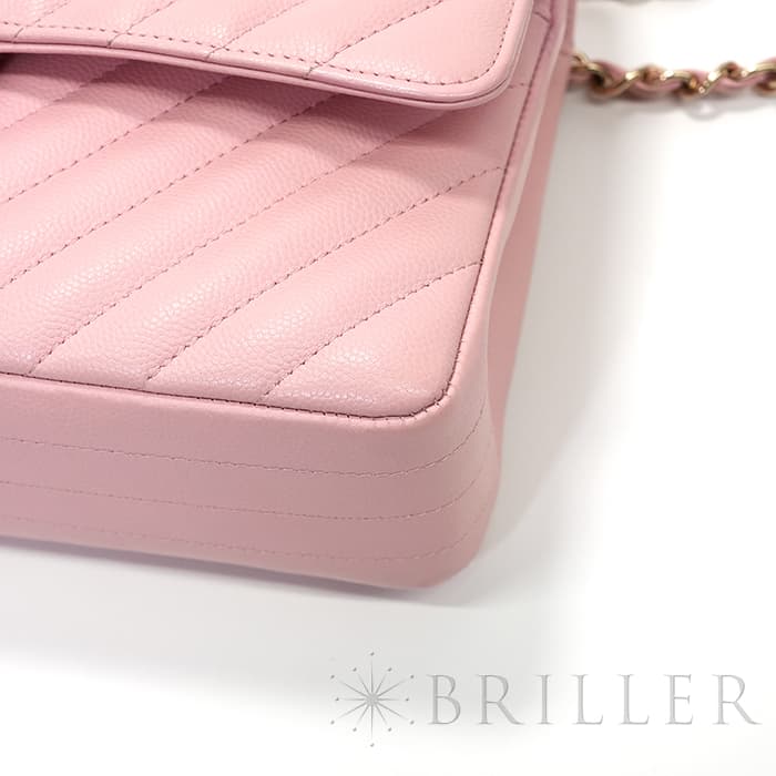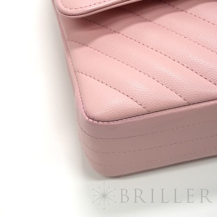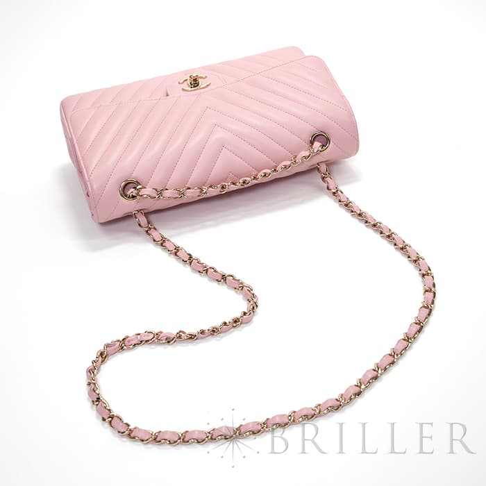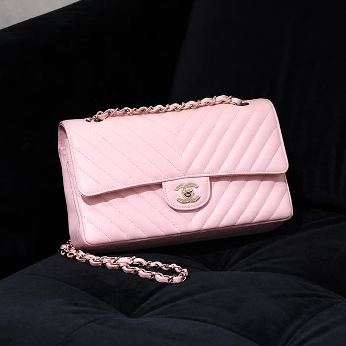 クラシックは、1955年に発表された初代モデル「2.55」を1983年に再デザインした伝統的なモデルです。バッグの前面には、今ではアイコンとなっている2つのCを掛け合わせた「ココマーク」をあしらったデザインが施されています。チェーンストラップは、ダブルで持ち手を短くしたり、シングルで肩掛けにしたり、スタイルに応じて長さを調節することができます。素材には滑らかな手触りのラムスキンを使用し、シンプルながら上品かつリッチな印象を演出します。キルティング加工を施すことで型崩れしにくくなり、デイリーユースしやすい実用性をも実現しています。代表作にしてシャネルの世界観を存分に味わえるバッグです。