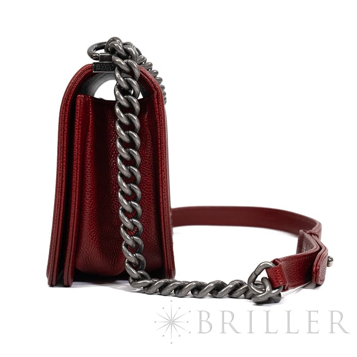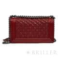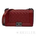 ガブリエル シャネルの最愛の人「アーサー ”ボーイ” カペル」にちなんで名付けられたハンドバッグ「BOY CHANEL」。ハンティング時に利用していた「弾薬保管バッグ」からインスピレーションを得たデザインで長方形のフラップや太めのチェーン、ダブルCを施したヴィンテージテイストの金具が特徴です。素材には傷や汚れに強いグレインド カーフスキンを使用。キルティング加工を施すことで型崩れしにくくなり、リッチな質感だけでなく、デイリーユースしやすい実用性をも実現しています。レッドカラーがファッションのアクセントになります。