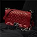 シャネル ボーイシャネル ハンドバッグ シャイニー グレインド カーフスキン レッド A67086 CHANEL