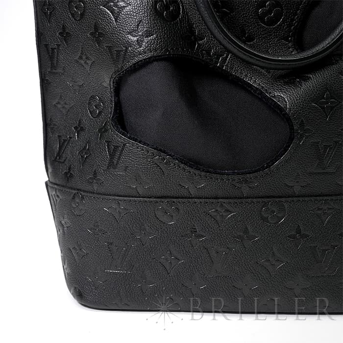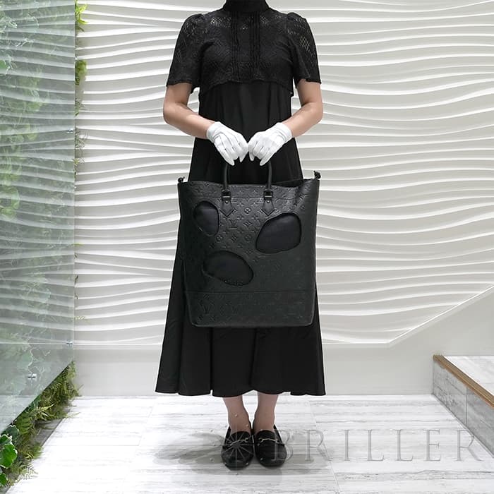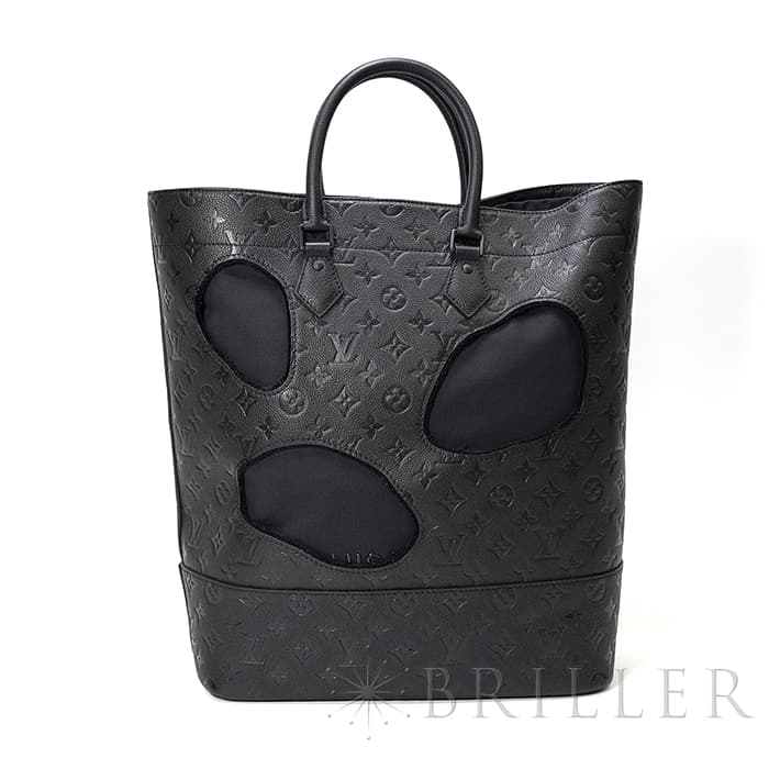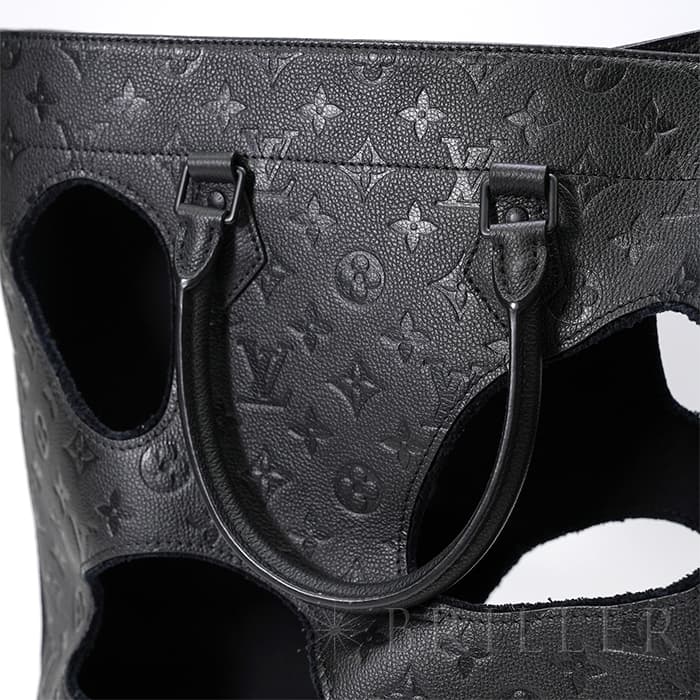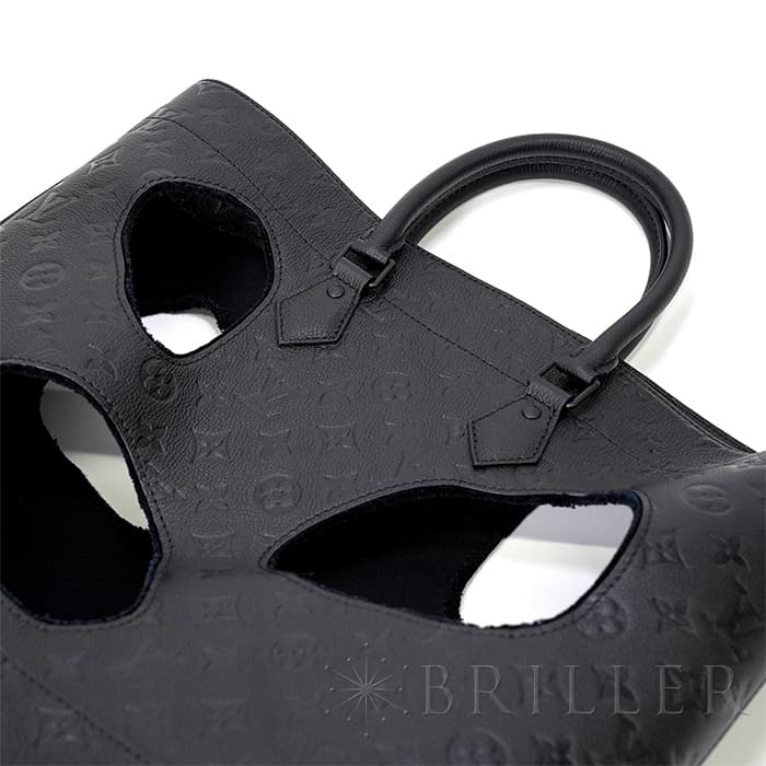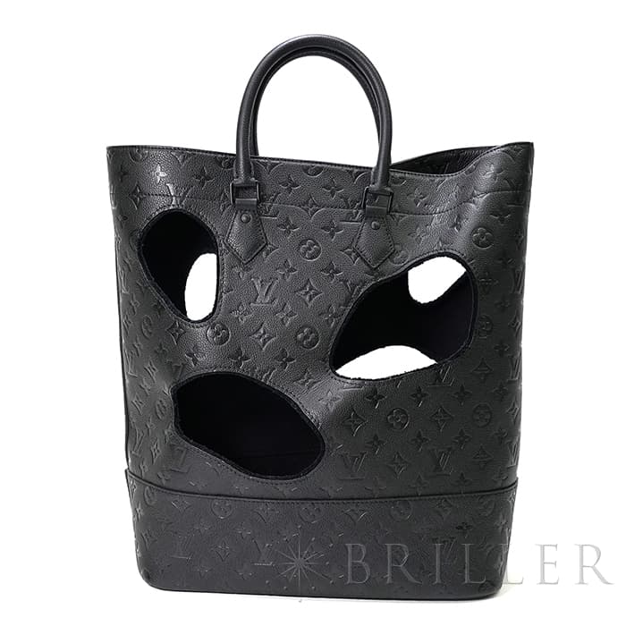 2021年に発表されたコムデギャルソンの創設者でデザイナーの川久保玲がデザインした「バッグ ウィズ ホールズ MM」。モノグラム・アンプラント レザー大胆な穴が開いた斬新なデザインの縦長のトートバッグです。内装には取外し可能なポーチが付属しています。もちろん収納にも優れており、A4サイズの書類はもちろん、折り畳み傘、ペットボトル、大きめのポーチなどたくさんアイテムが収納できます。
