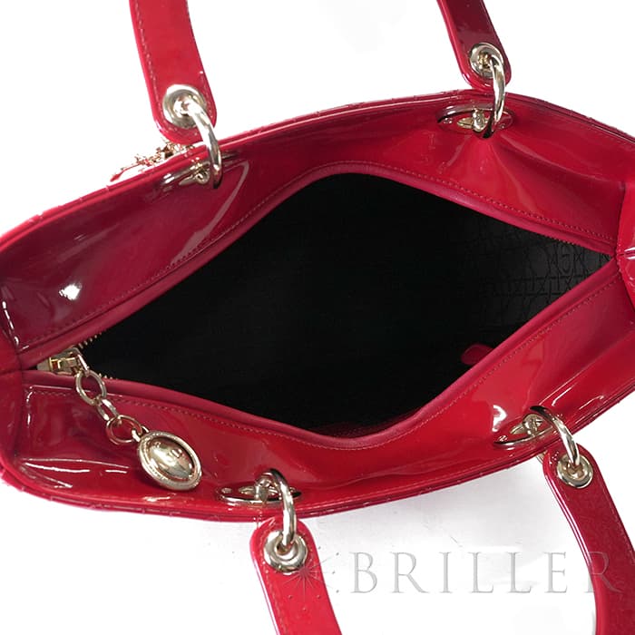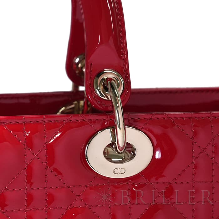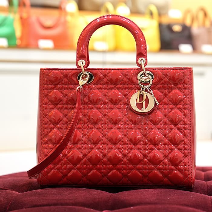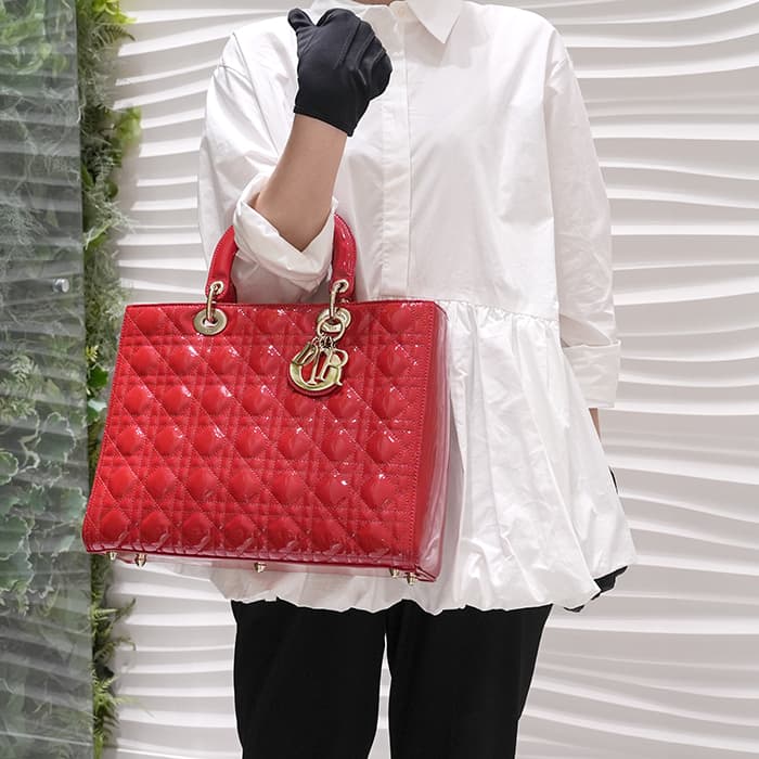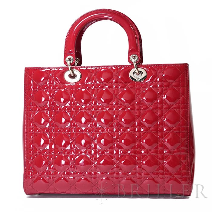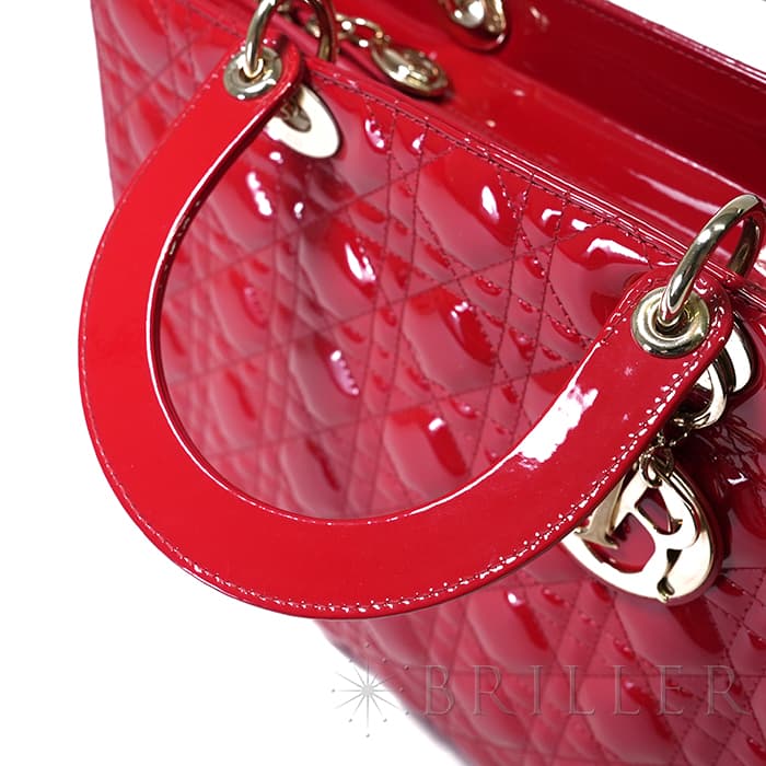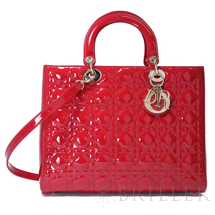 フランスのファッションデザイナー クリスチャン・ディオールが1946年パリで創立したファッションブランドを展開するクリスチャン・ディオール。クリスチャン・ディオールのアイコン的存在であり、クリスチャン・ディオールのビジョンを体現したバッグ「レディ ディオール」。こちらは13インチのノートパソコン、ウォレット、携帯電話、カードホルダー、サングラスなどが収納可能なラージサイズです。 艶やかなパテントカーフスキン素材がラグジュアリーな雰囲気を、鮮やかなレッドが華やかさと上品さを醸し出しています。ハンドバッグとしてはもちろん、ショルダーストラップも付属し2WAYで楽しめる、アイコニックなカナージュステッチにD.I.O.R.チャームが素敵なアイテムです。