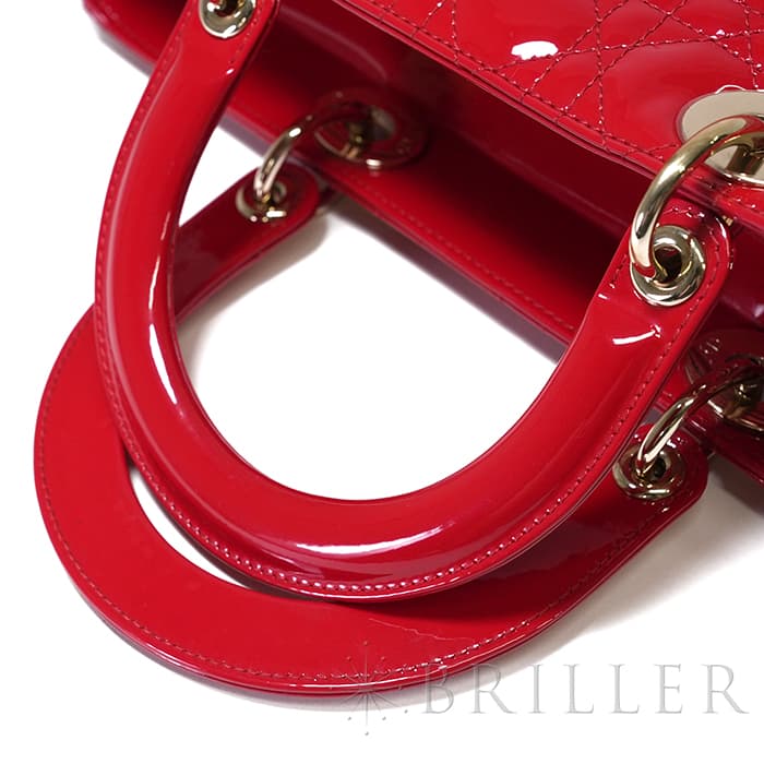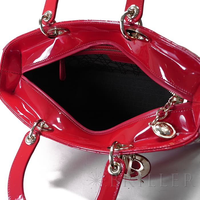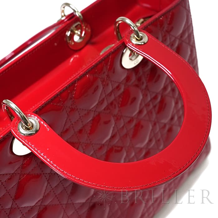 クリスチャン ディオール レディディオール ラージ 2way バッグ パテントカーフスキン レッド 90235676 CHRISTIAN DIOR
