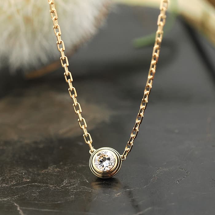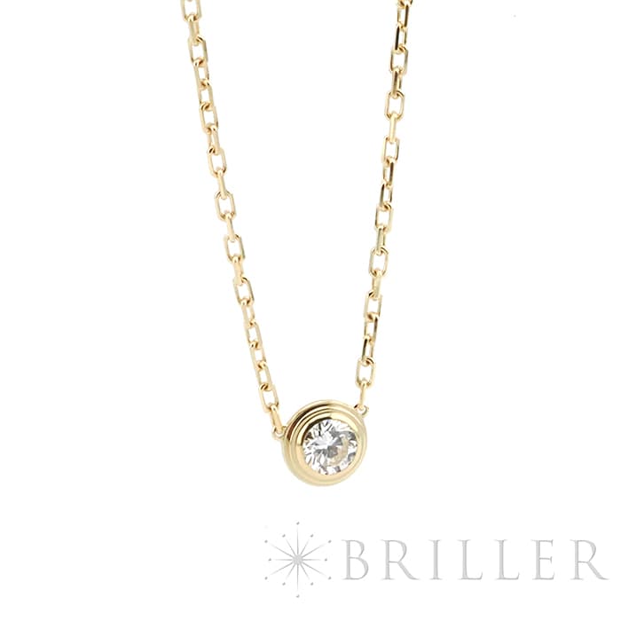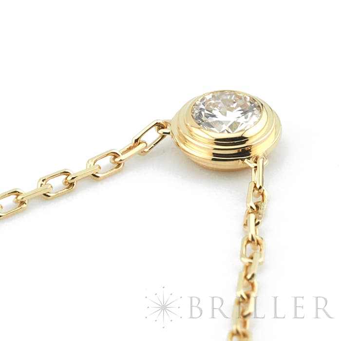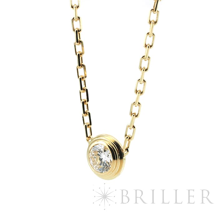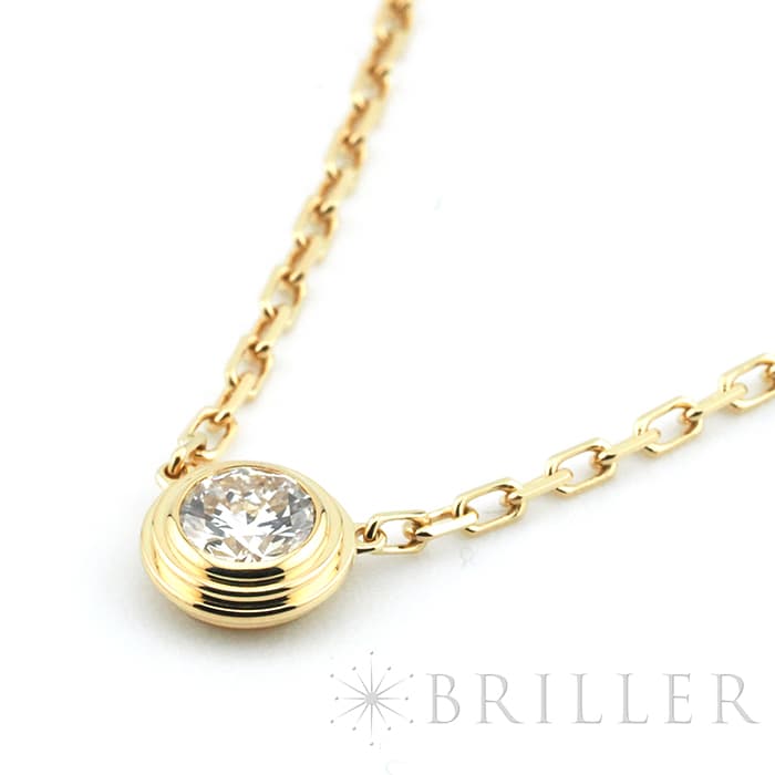 世界5大ジュエラーのひとつである「カルティエ」。 1粒のダイヤモンドが輝きを放つカルティエの「ダム-ル」コレクションは、 1938年に登場したモデルを再解釈した、フェミニンかつエレガントなコレクションです。 シンプルで華奢なデザインのため、重ね着けにもオススメです。 こちらはダイヤモンドの存在感が際立つラージモデルとなっており、高級感漂うイエローゴールド素材は首元を上品に彩ります。
