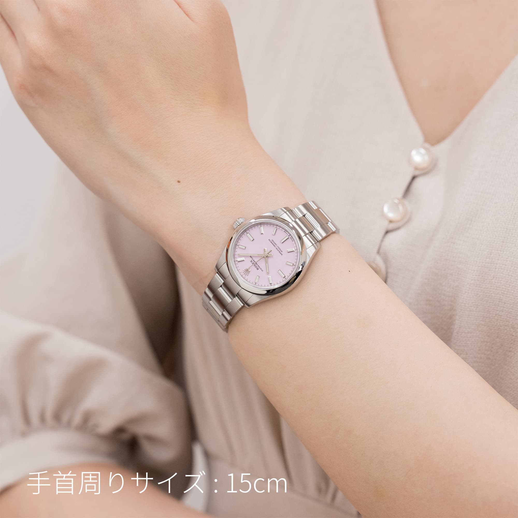 ロレックス オイスターパーペチュアル31 277200 キャンディピンク ROLEX堅牢性の高い「オイスターケース」と自動巻き上げ機構「パーペチュアル」を搭載したロレックスの原点ともいえる「オイスターパーペチュアル」。 その中でもとりわけ人気の高いキャンディピンクの文字盤は、シンプルながらも甘さのあるおしゃれなカラーリングで手元を演出します。2022年に オイスターパーペチュアル31のキャンディピンク文字盤が生産終了となり、わずか2年という生産期間の短さから注目を集めています。保証書日付 2020年9月2024年10月 提携修理会社にて機会点検・調整・外装仕上げ済みコマに小傷がございます。当社の中古品はインターネットでも安心してご購入頂けるよう、しっかりとした点検整備を行っております。ロレックス 時計の買取り・下取りも行っておりますので、お気軽にご相談ください。