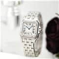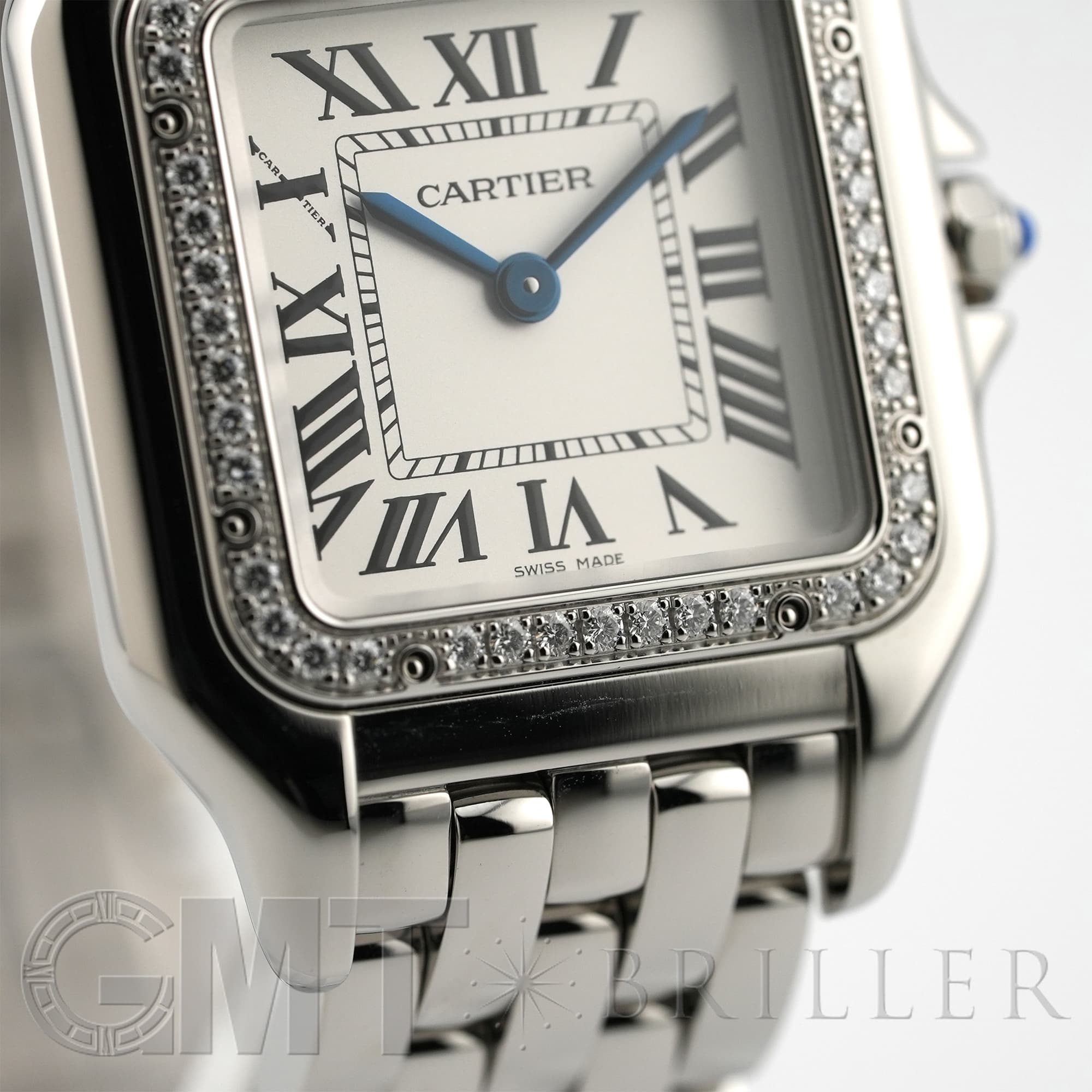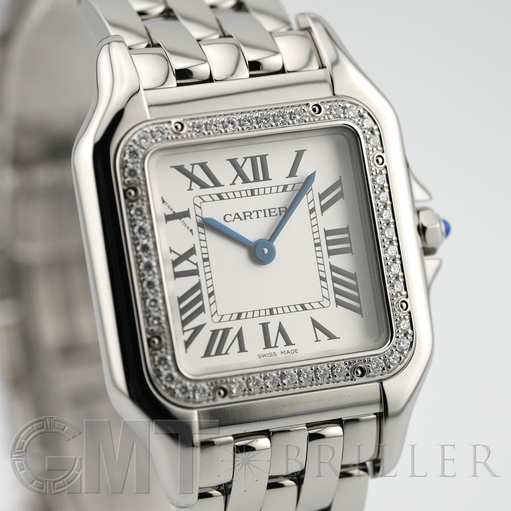 カルティエ パンテール ドゥ カルティエ MM W4PN0008 CARTIER1980年代伝説と言われるほど人気を集めたカルティエのアイコンウォッチ「パンテール」。フランス語で豹を意味するパンテールは、カルティエのジュエリーラインでも度々用いられてきた象徴的なモチーフです。特徴的なスクエアケースに5連ブレスは腕にフィットし付け心地が良く、また、光を反射しキラキラと輝くためジュエリーのような華やかさを持っています。ベゼルにダイヤをセッティングしたエレガントなモデルです保証書日付 2022年5月2024年11月当社提携工房にて電池交換・外装仕上げ 12時側ブレスレット付け根に小傷がございます。 内箱留め具破損があり閉まらない状態になっています。 当社の中古品はインターネットでも安心してご購入頂けるよう、しっかりとした点検整備を行っております。 カルティエ 時計の買取り・下取りも行っておりますので、お気軽にご相談ください。