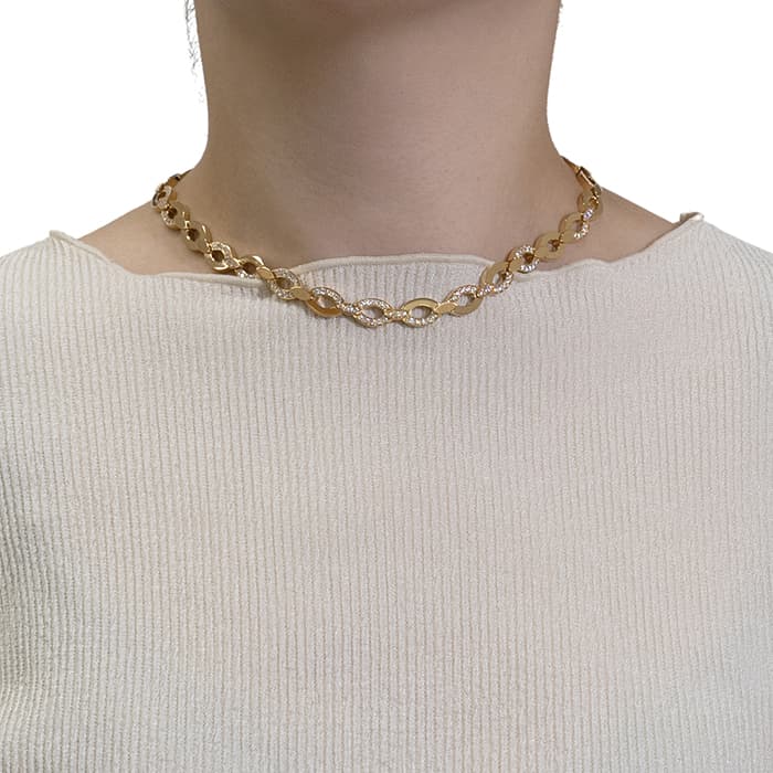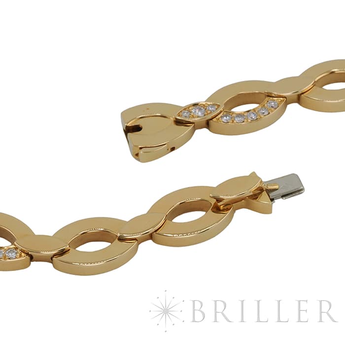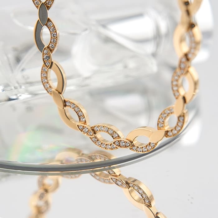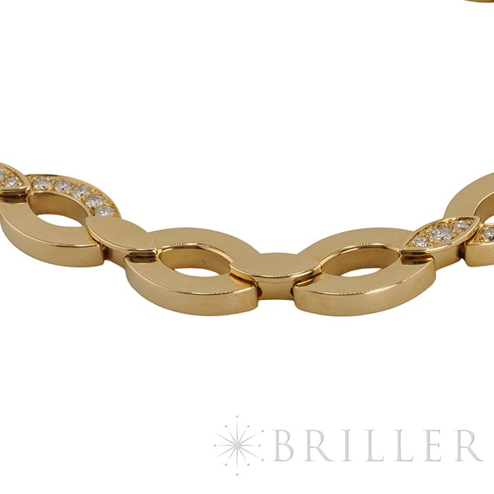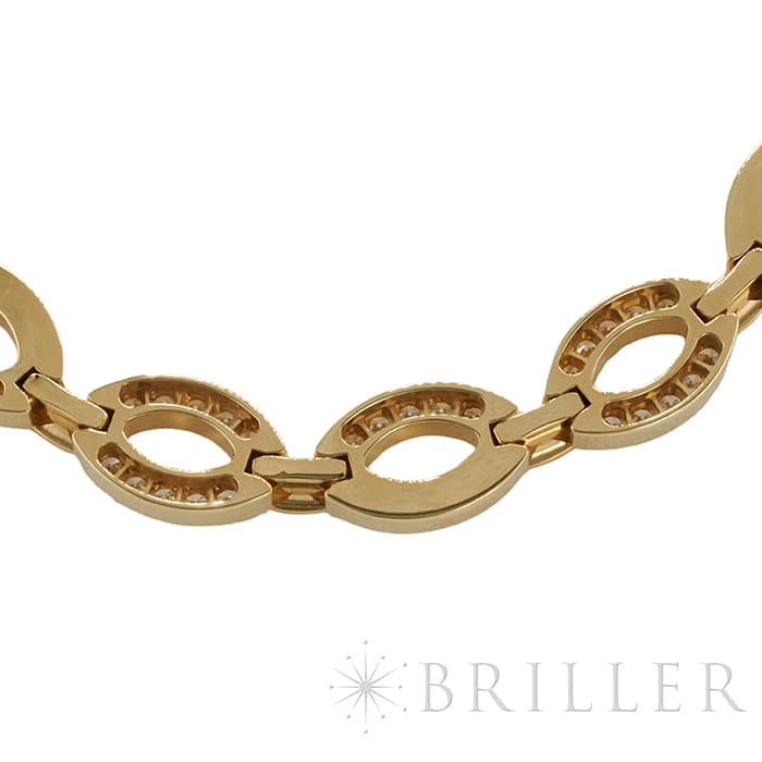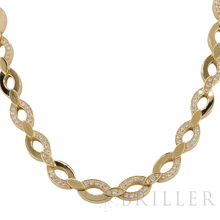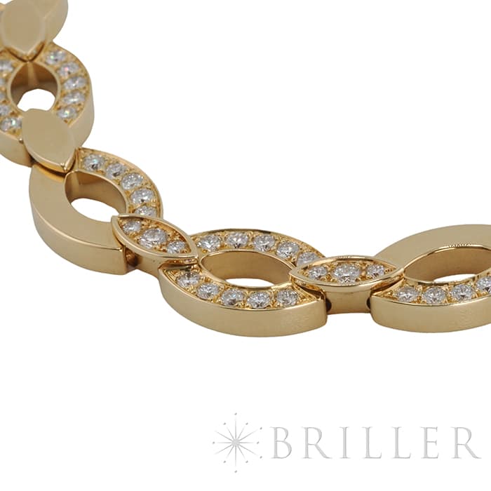 世界5大ジュエラーとして世界中から愛される「カルティエ」。フランスで誕生し、独創的なデザインや技術力の高さから圧倒的な支持を受けるブランドです。2つのマーキス型デザインが連なったデザインが特徴的なデザインのディアデアコレクション。イエローゴールドを使用したこちらのネックレスは、存在感抜群のジュエリーです。カルティエの高品質なダイヤモンドがいたるところにセッティングされており、たいへんラグジュアリーなネックレスに仕上がっています。
