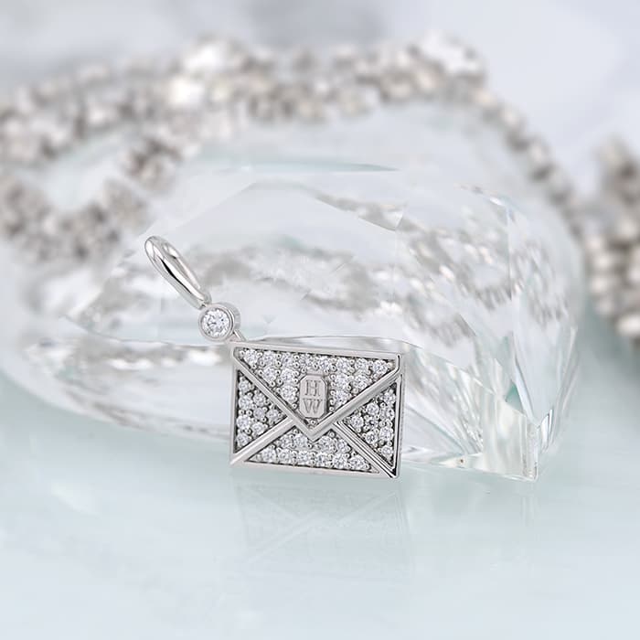 世界5大ジュエラーのハリーウィンストンは、最高品質のダイヤモンドを使って、美しい輝きのジュエリーを生み出します。 バラエティー豊かなモチーフが揃う、チャーム・バイ・ハリー・ウィンストン。 ブランドロゴがアクセントの封筒のモチーフに、ハリーウィンストンが誇るラウンド・ブリリアントカット・ダイヤモンドを繊細にセッティングしています。