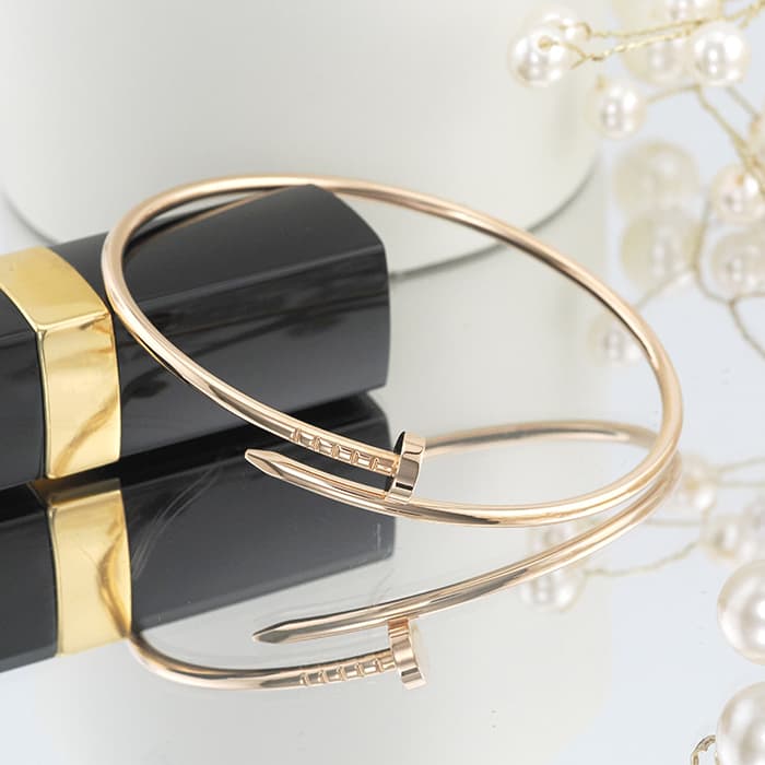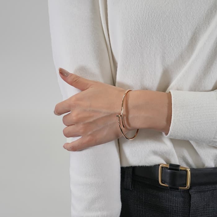 フランスで誕生し、独創的なデザインや技術力の高さから圧倒的な支持を受けるブランド「カルティエ」。 1本の釘から誕生したジュエリー「ジュスト アンクル」のブレスレットは、個性的かつ上品なデザインが人気のジュエリーです。 大胆かつモダンな雰囲気で、洗練された美しさを放ちます。