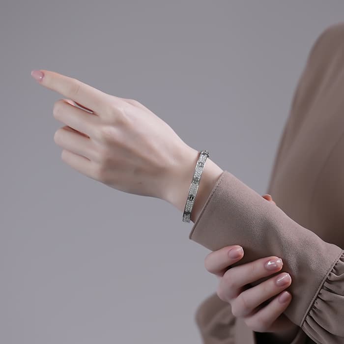 世界5大ジュエラーとして世界中から愛されるブランド「カルティエ」。カルティエが手掛ける「束縛」や「愛の絆」をテーマにして作られた「ラブコレクション」は、老若男女問わず不動の人気を博しています。こちらはホワイトゴールドのブレスレットの表面に、贅沢にパヴェダイヤモンドを配置した華やかでゴージャスなブレスレットです。煌びやかなダイヤと洗練された印象を与えるホワイトゴールドのリングがお手元を美しく飾ります。