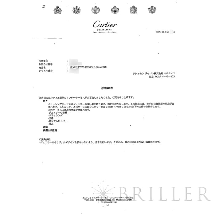2024年9月カルティエにて磨きを行っています。