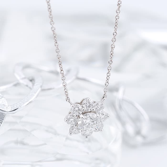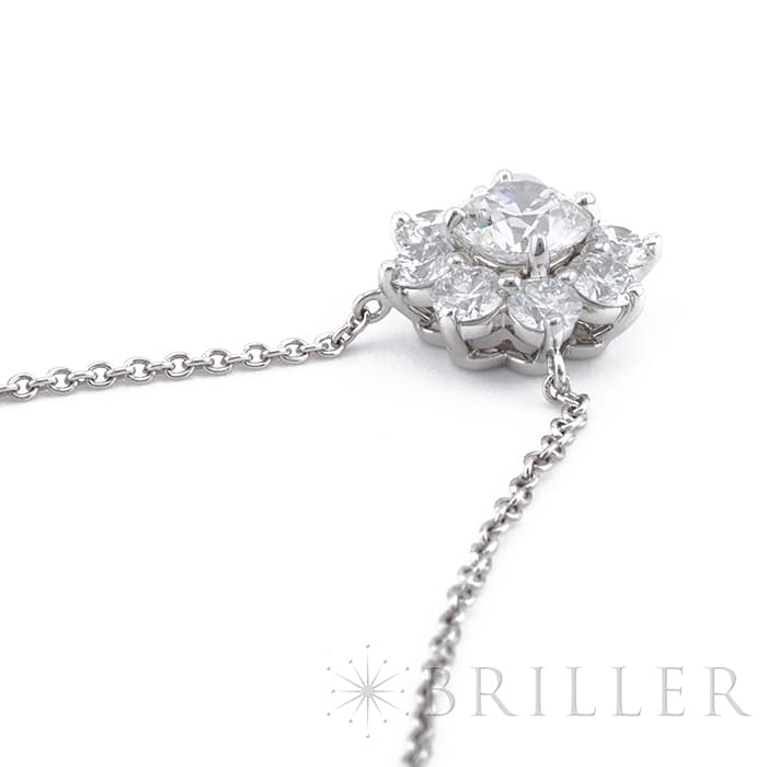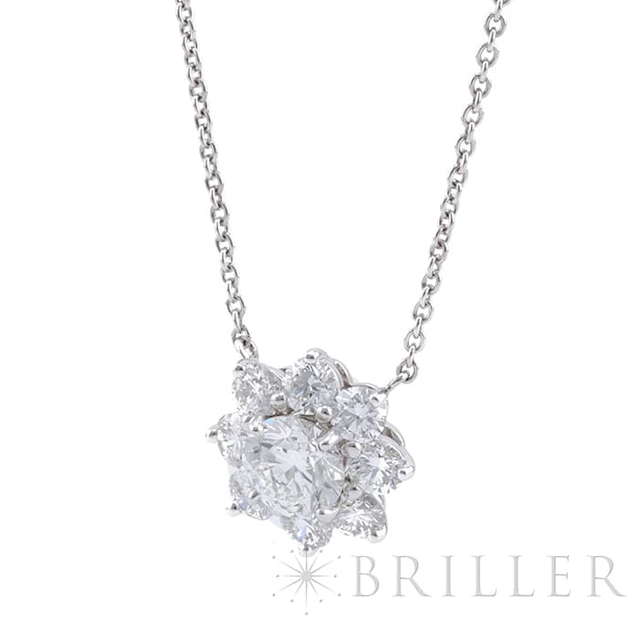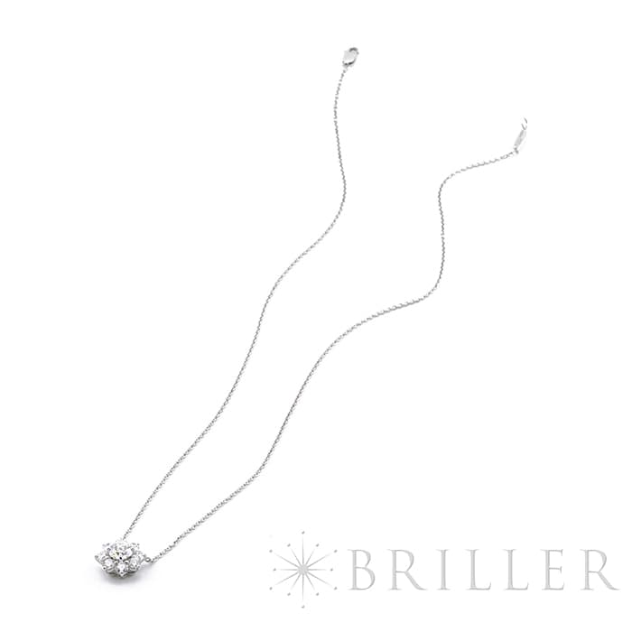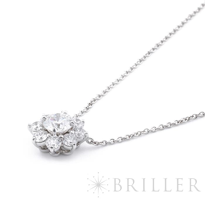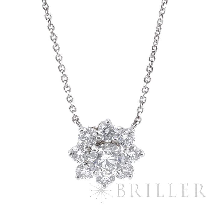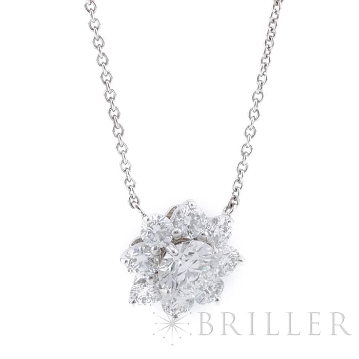 世界五大ジュエラーの一つであり「キング・オブ・ダイヤモンド」とも称されるハリーウィンストン。 向日葵をモチーフにした「サンフラワー」コレクションは、センターストーンの周りを8石のダイヤモンドが光輪のように彩ります。中央のダイヤモンドは0.70ctの大粒のものがセッティングされ、たいへん贅沢な雰囲気を演出します。 プラチナ素材とダイヤモンドの組み合わせも重厚感があり、「キング・オブ・ダイヤモンド」の名にふさわしいネックレスです。