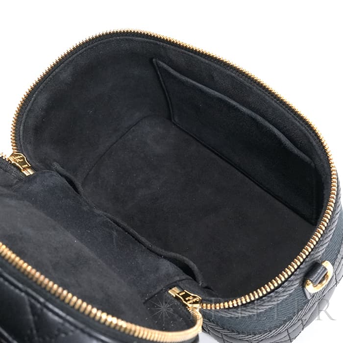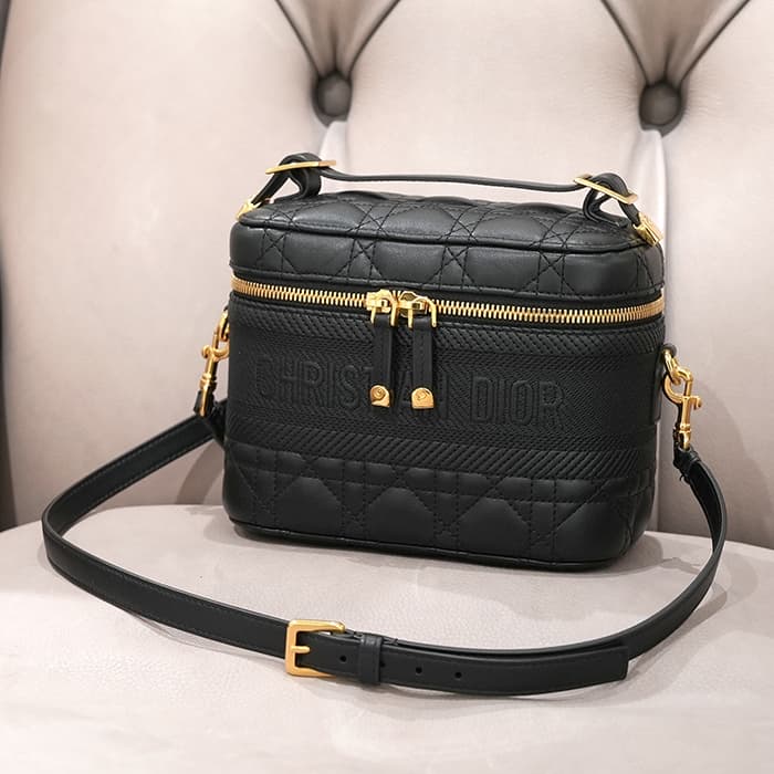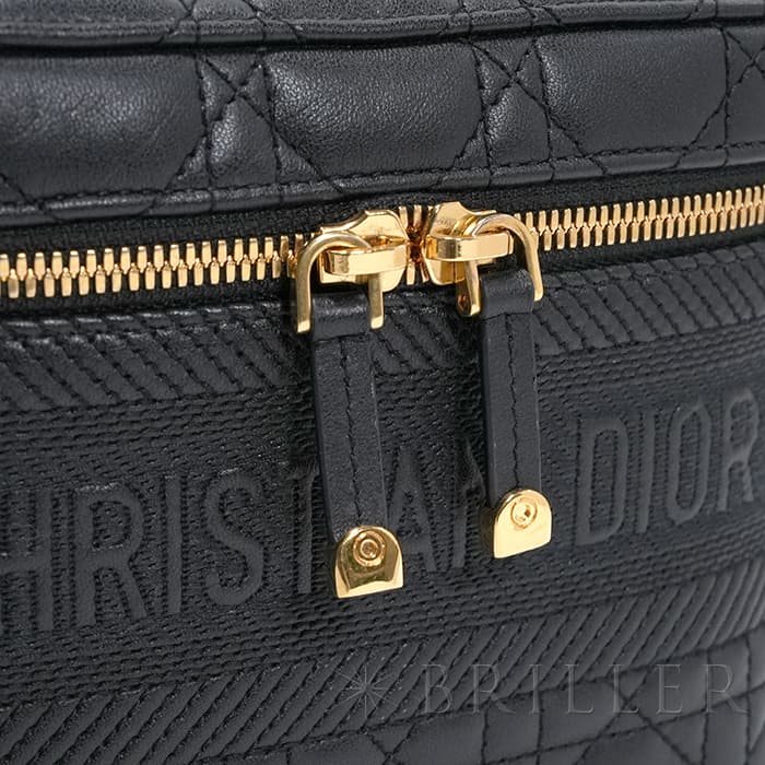 クリスチャンディオール トラベル ヴァニティ スモール バッグ カナージュ ラムスキン ブラック CHRISTIAN DIORランスのファッションデザイナー クリスチャン・ディオールが1946年パリで創立したファッションブランドを展開するクリスチャン・ディオール。ブラックのラムスキンにカナージュステッチを施したトラベル ヴァニティ スモール バッグです。フロントにChristian Dior Parisシグネチャーをあしられています。