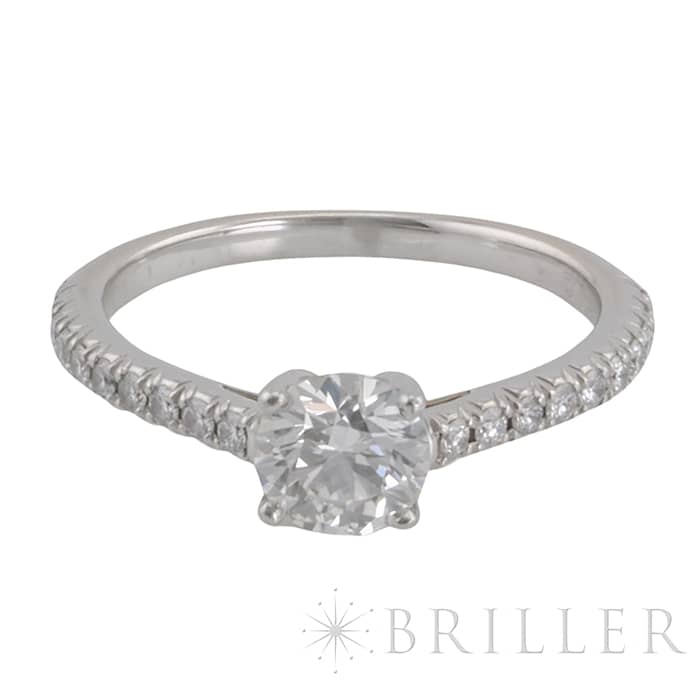世界5大ジュエラーの1つであるティファニーは、鮮やかなティファニーブルーと呼ばれるブランドカラーで、ジュエリー好きでなくても知らない人がいないほどの知名度を誇るアメリカのブランドです。リングの中央にダイヤモンドをセッティングした「ソリティア」はシンプルながら気品を感じさせます。さらにリングの半分にダイヤモンドを埋め込み上品な輝きでお手元を美しく飾ります。