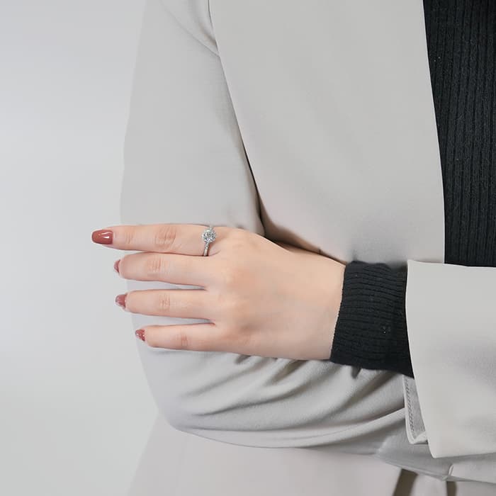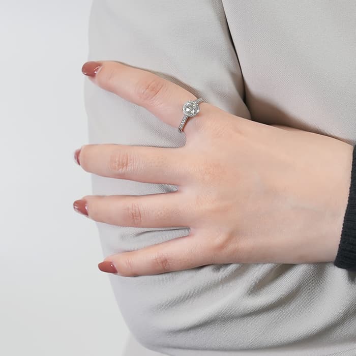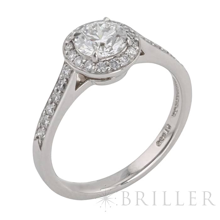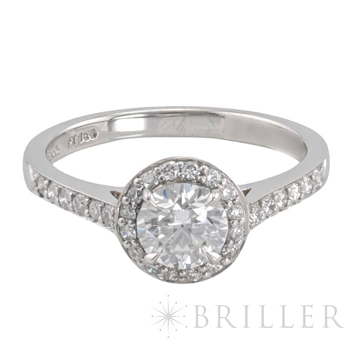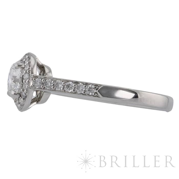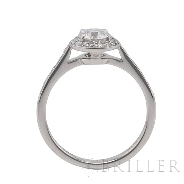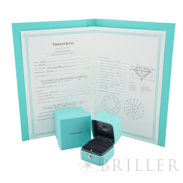 世界5大ジュエラーの1つであるティファニーは、鮮やかなティファニーブルーと呼ばれるブランドカラーで、ジュエリー好きでなくても知らない人がいないほどの知名度を誇るアメリカのブランドです。センターの0.64ctの ラウンド ブリリアントカット ダイヤモンドは周囲に施されたダイヤモンドによってこの上ない輝きを放ちます。 シンプルでありながら完成されたデザインで、ダイヤモンドのきらめきを存分にお楽しみいただけるリングです。
